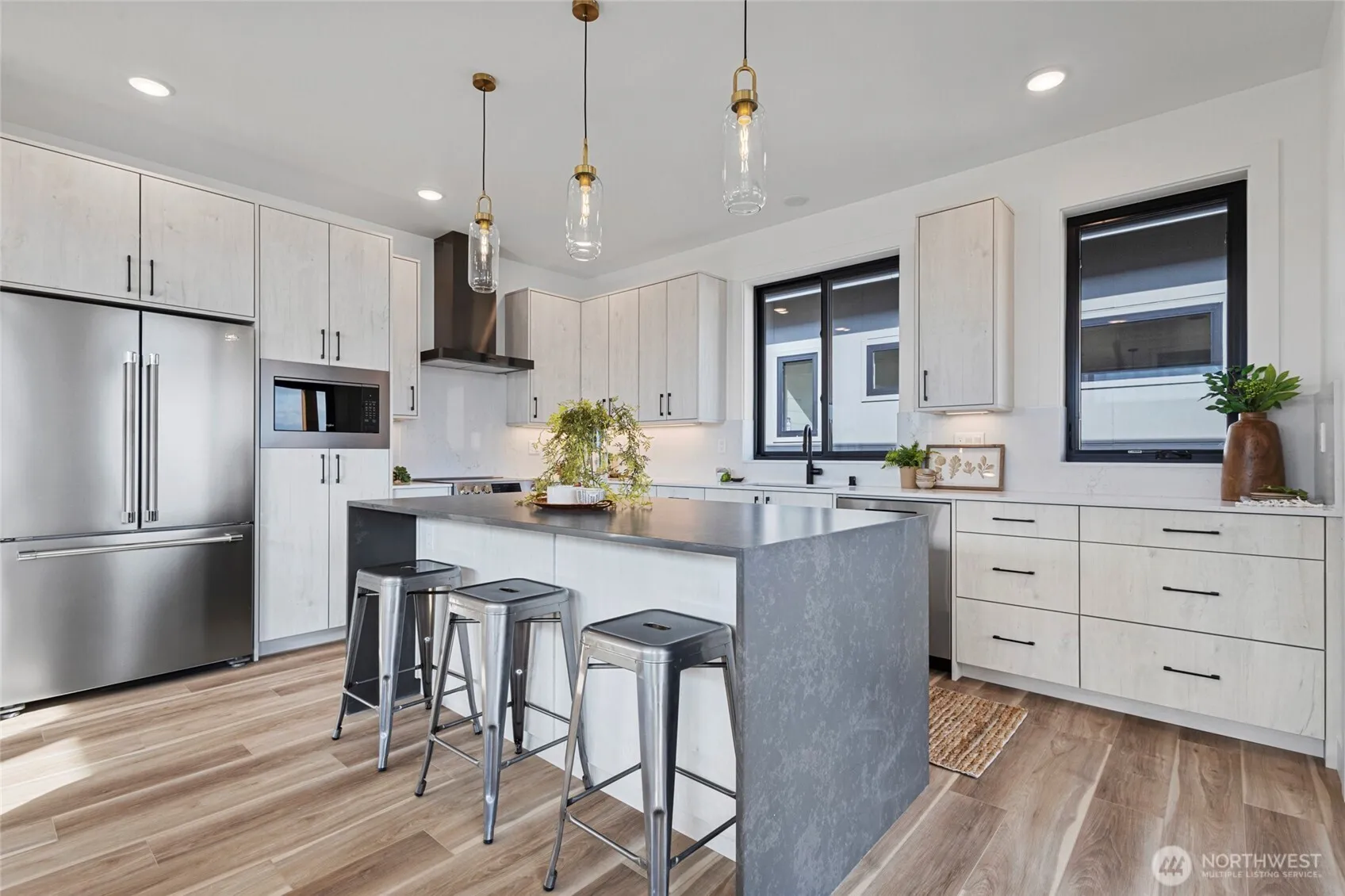 Welcome to River-Walk, a unique NW Washington community offering attractive design, luxurious finishes, beautiful views and pedestrian-friendly connectivity to Lynden, a safe and well-maintained city of 16,000. Residents can walk or bike a few blocks to downtown Lynden’s quaint restaurants and stores, plus they’re less than two hours to Seattle, Vancouver, B.C., Mt. Baker and the San Juan Islands. Lot 63 is on River-Walk’s east side. It offers a comfortable 1428 sq. ft. with 2 bedrooms, 2 bathrooms and many upgrades. The gourmet kitchen is highlighted by quartz countertops and islands with full waterfall drops.