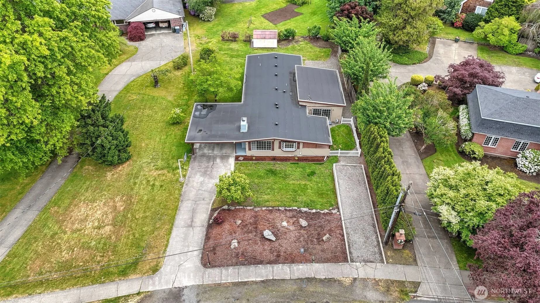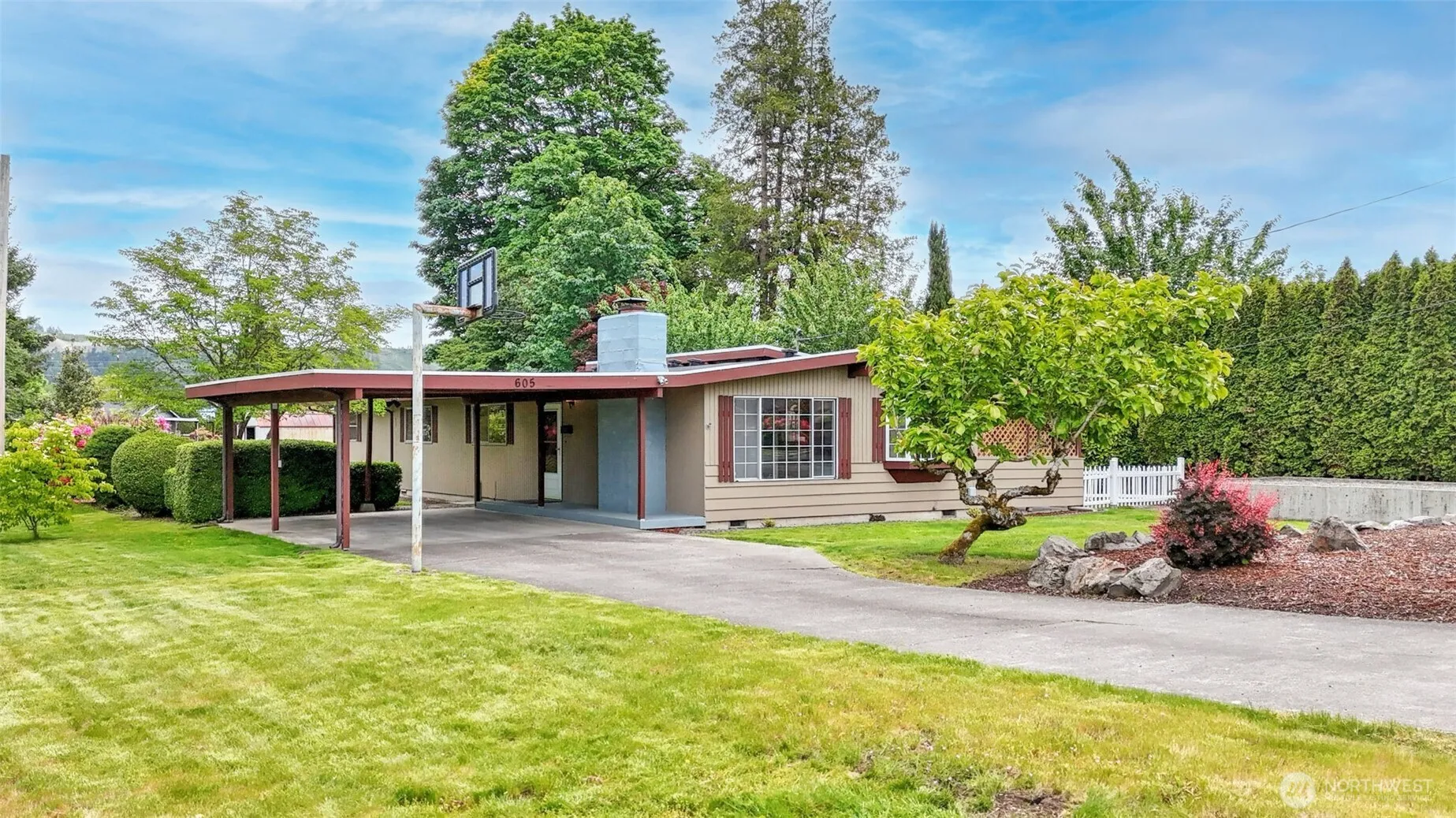 Wonderful rambler on a large level lot in the quiet and picturesque town in Sumner! Spacious 3 bedroom 2 bath is graced w/ beautiful engineered hardwoods thruout, updated primary bath, & Air Conditioning! Light & bright kitchen w/ all appliances staying, sunny eating area and slider that leads you to the private covered side yard/patio perfect for hot tub & entertaining. 3 bedrms including a large primary w/ adjoining newly remodeled bathroom & walk in closet. Huge bonus room with slider to side yard and separate door to the spacious backyard with mature landscaping and shed. RV parking! Surrounded by parks & minutes from downtown, don’t miss out this gem in the heart of what U.S. Today rated one of the best small towns in America in 2024!