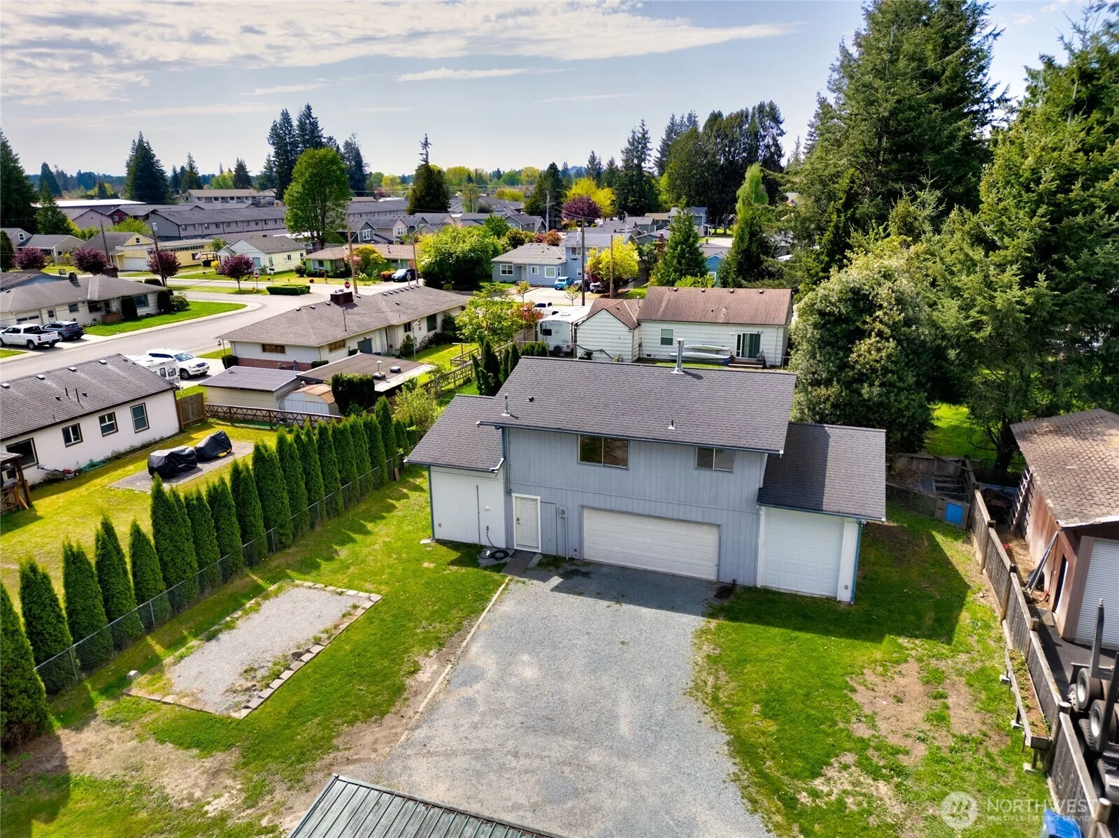 Charming 3 bdrm, 2 bath home with SHOP + APT–perfect for multigenerational living or rental income! You’ll love the open layout, featuring a move-in ready home with 1,340 sq ft of cozy living space, bright kitchen, and 2 fireplaces. The primary bedroom boasts a private 1/2 bath & the third bedroom doubles as a studio with a separate entrance and its own 3/4 bath. Outside, the oversized shop is perfect for hobbies/future expansion, and includes a 720 sq ft 1 bdrm 1 bath apartment upstairs. Large covered patio for entertaining. Full RV hookups. Add’l unfinished studio/MIL apt with great potential on main level of SHOP–bring your vision to life! Great location near town and Hwy 20. Oversized lot may be subdivided; buyer to verify.