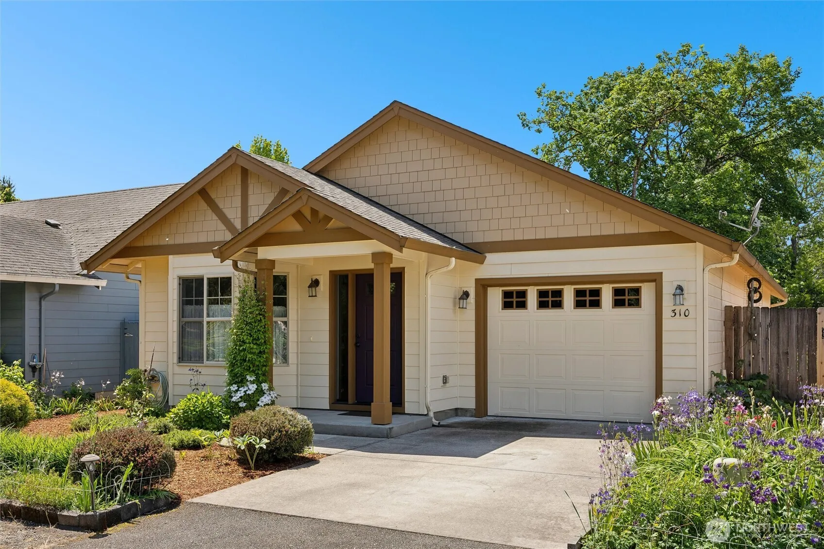 Turn key and move in ready! Adorable 2 bed, 2 bath one-level home with magical front and backyards! Enjoy wood laminate flooring throughout much of the home, a spacious kitchen with island, and ALL included black and stainless steel appliances—plus washer & dryer in the laundry room. The home features a cozy living room, a nook/office space, and a dining area off the kitchen that flows into a bonus space perfect for hobbies, workouts, or relaxation. From there, step into your own private sunroom with access to the fenced backyard—your perfect retreat for outdoor enjoyment. Don’t miss this charming gem!