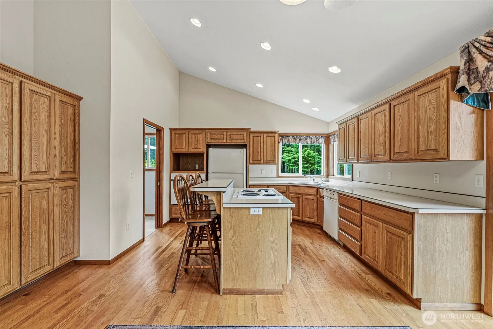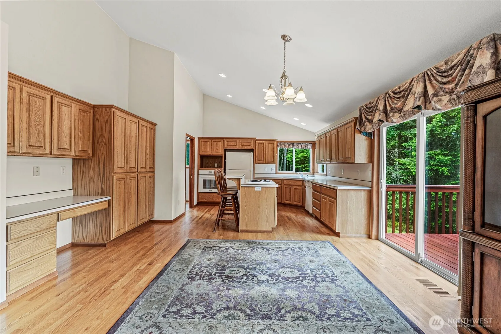 Beautiful 5 acre wooded setting! Well cared for one level home offers the ideal combination of comfort & functionality. The home features primary bedroom w/ full bath & walk in closet, 2 additional bedrooms & full bath. New roof installed, open concept layout for easy living. Kitchen with plenty of cabinetry, built in desk area, island w/seating & dining area. Nice hardwood floors, living room w/free-standing wood stove & heat pump. Generous deck, perfect for relaxing or entertaining, mature landscaping, double attached garage & secluded property. Enjoy the bonus of a large, detached shop, perfect for hobbies, storage, or workspace, plus covered RV parking. Great property & home, close in location. Truly a pleasure to view.