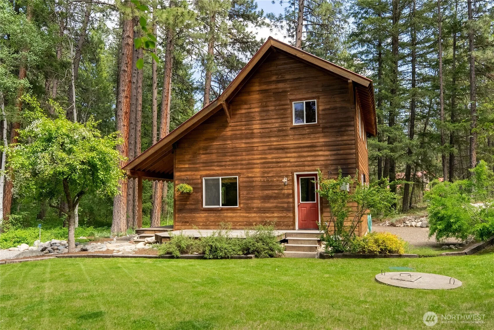 Custom 2BD/1.5BA home in Mazama’s coveted Deer Run community. This 1,356 SF home features vaulted wood ceilings, open layout, main floor bedroom, full bath, utility room, and spacious back deck. Upstairs offers a primary bedroom, ½ bath (plumbed & ready for shower), and loft for guests or office. Covered front porch, landscaped yard, gravel drive, shaded dog kennel, and outdoor climbing wall. Community water system with backup generator. Direct access to ski and fat bike trails, walk to Mazama Store & Pub. Mazama’s best shared Methow riverfront, perfect sandy beach and mountain views. Endless year-round recreation in the Cascade Mountains.