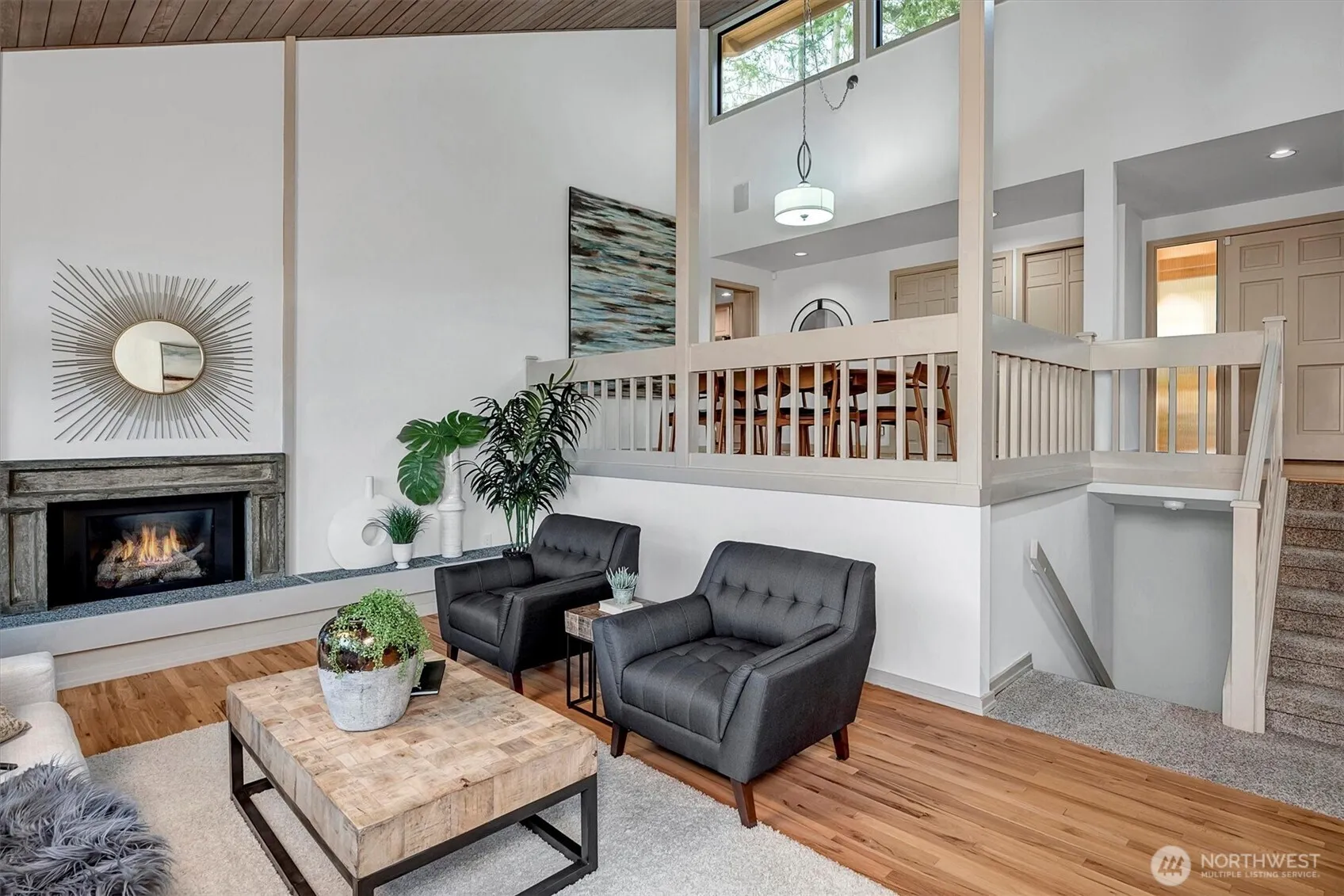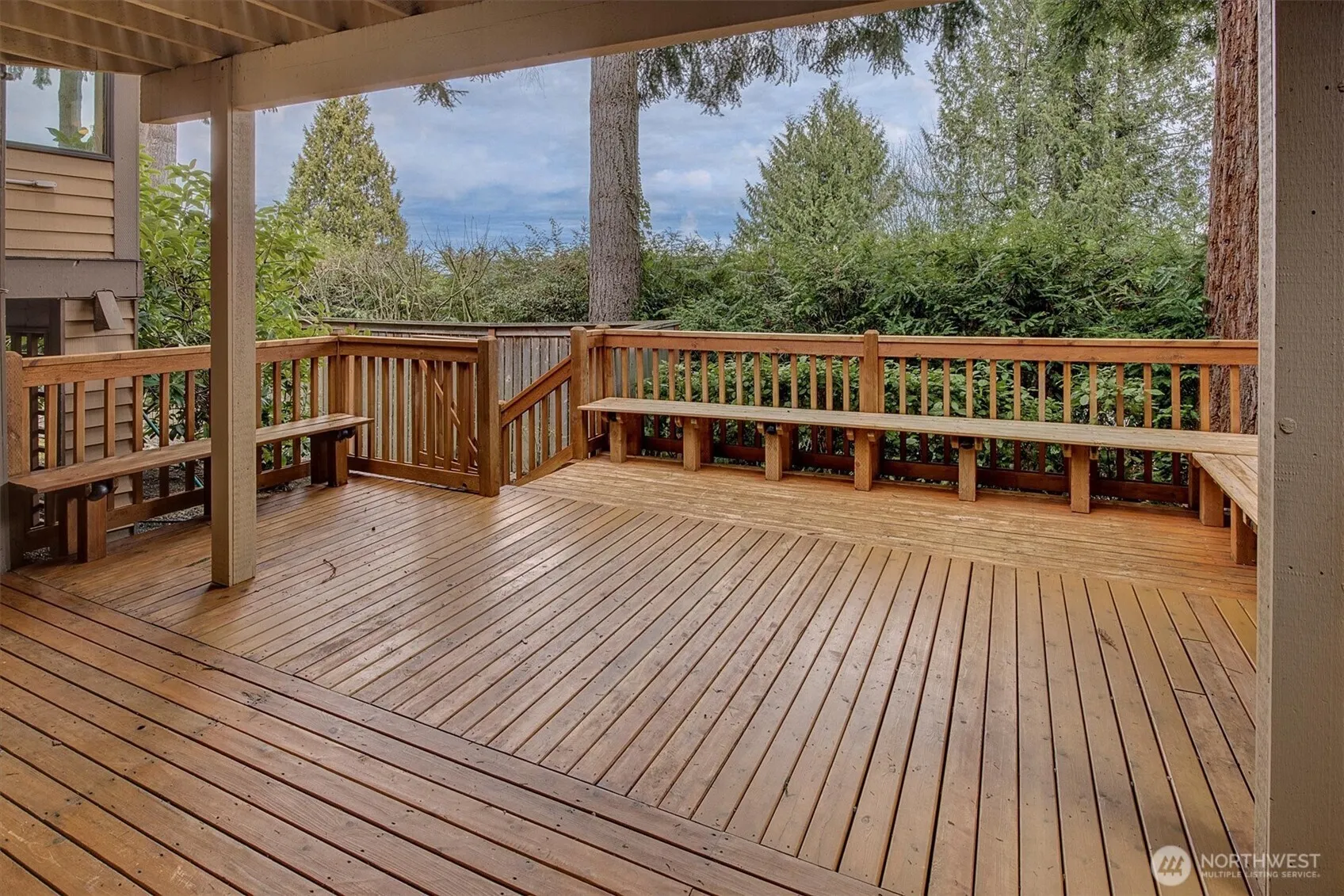 Wake up to sweeping views of the Cascade mountains and downtown Bellevue from the main floor primary bedroom with private ensuite. The dramatic living room with more views stuns w/vaulted wood-paneled ceilings, expansive windows, hardwood floors, and gas fireplace. The kitchen has granite countertops, SS appliances, and ample cabinets and connects to an open dining room. A cozy family room w/ a 2nd fireplace opens to the deck. A 2nd bdrm/den and powder room round out the main level. Discover flexible living downstairs with three additional bedrooms (or office/den), a spacious rec room with fireplace, and an abundance of storage. Additional comforts include central A/C and a backup generator, ensuring peace of mind in every season.