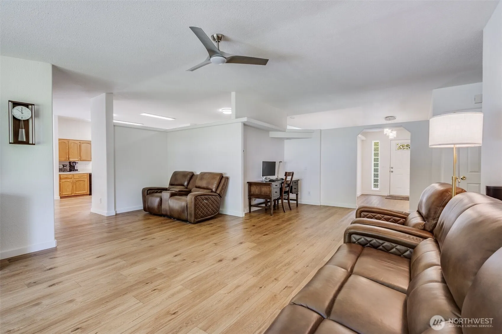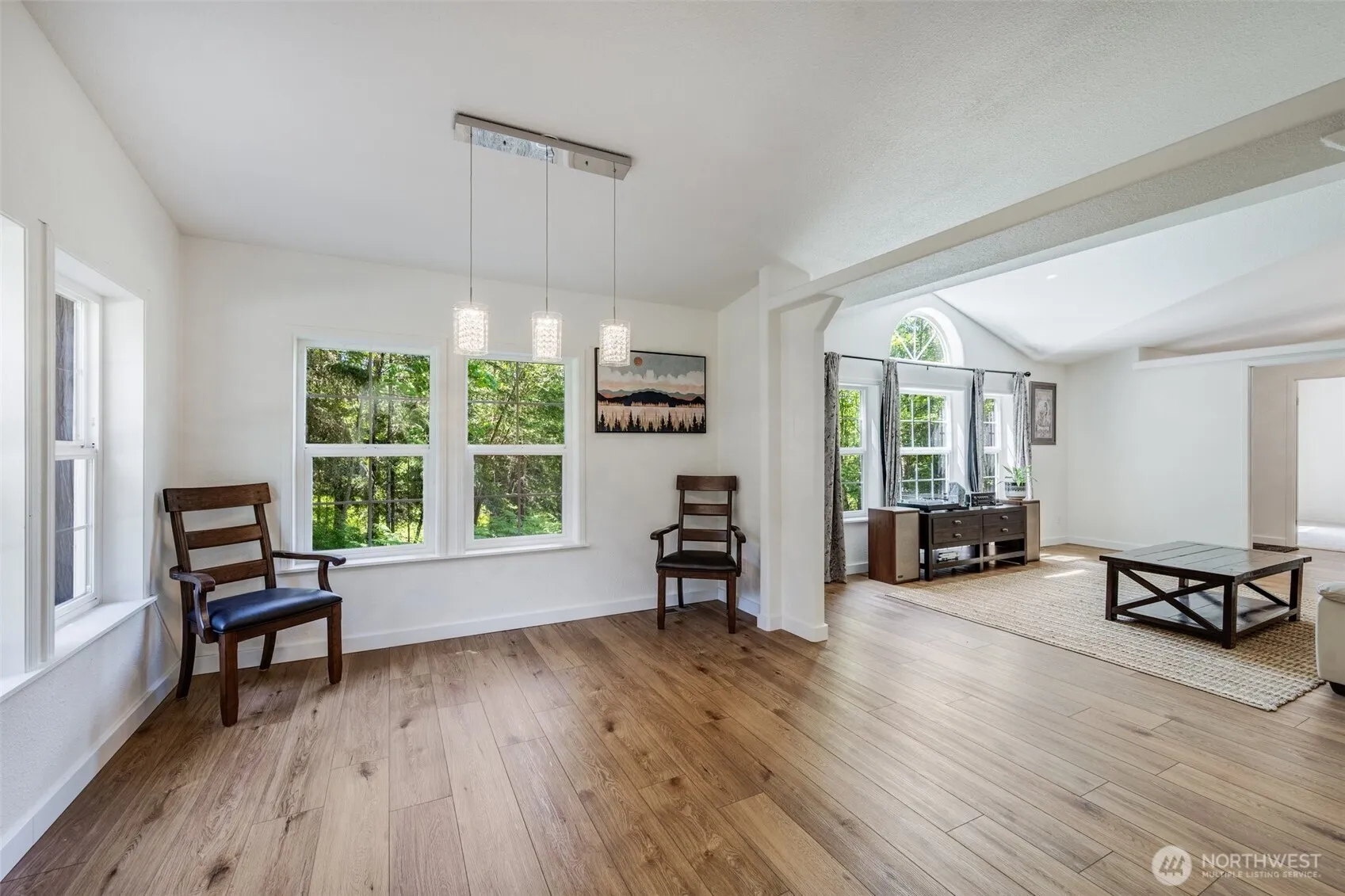 Welcome to this beautifully maintained 3-bed, 2.5-bath home with many upgrades and 2X6 construction. This secluded 5 acres can be your private woodland retreat! This peaceful sanctuary offers unmatched privacy and abundant wildlife in a serene, park-like setting. Inside, enjoy an open-concept layout with both a family & living room, a cozy wood stove, updated kitchen, fresh interior paint, & recent LVP flooring. The spacious primary suite includes a sitting room/den & a spa-like bath with a large jetted tub. All bedrooms feature brand-new carpet. Outside, enjoy a newer roof with warranty, updated exterior paint, and multiple outbuildings for ample storage and shop space. Private well and wired for generator. Schedule your tour today!