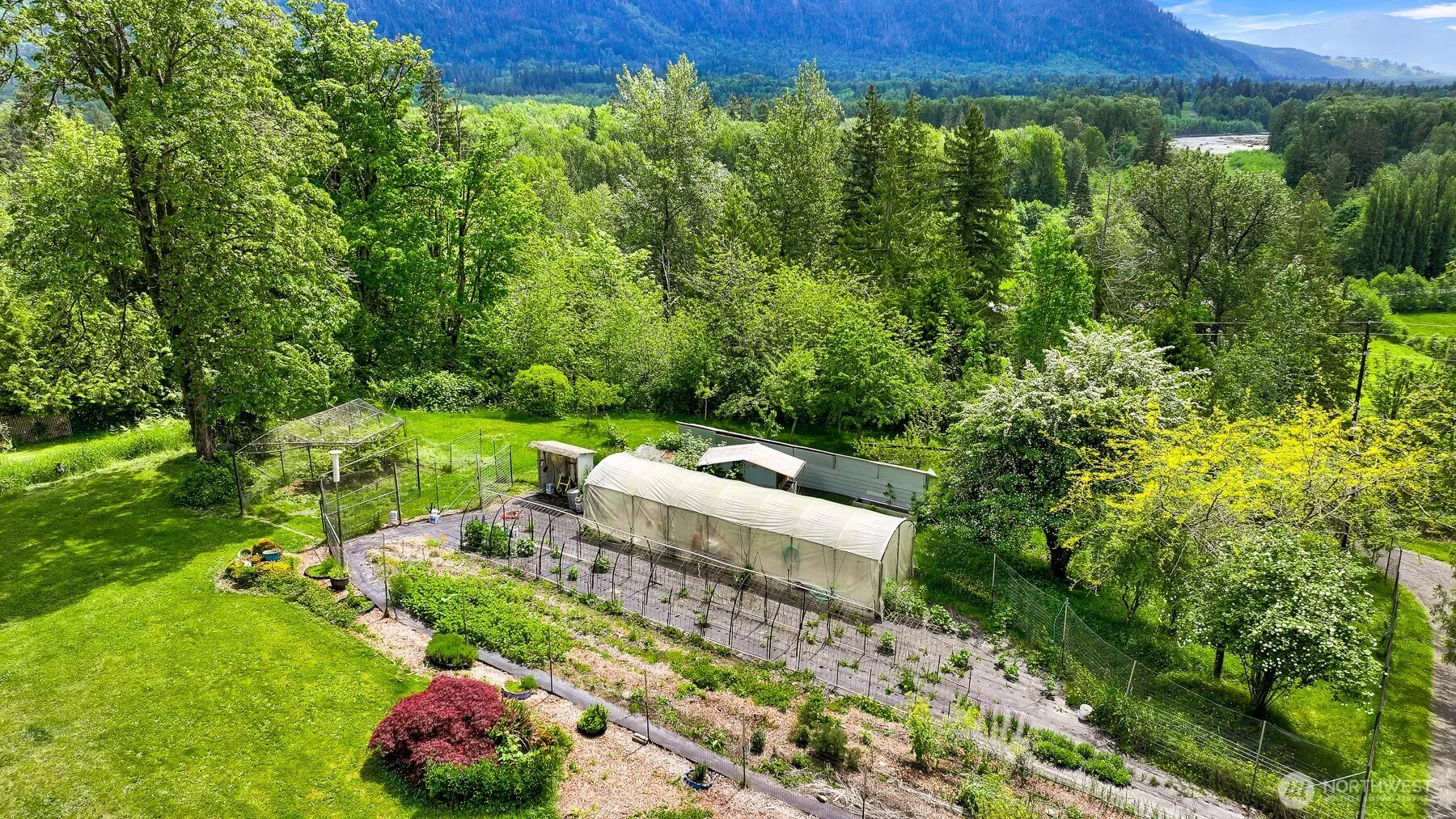 This stunning estate property has it all! Enjoy the nearly 12 secluded acres complete with an open concept house, large shop, covered RV parking with hook-ups, acres of trails with private creeks, and your own glacier spring! The grounds include orchards, berries, large gardens and 2 greenhouses! Inside the house you will find a new ERV Hvac system, heat pump, A/C, Air purifier system and new ductwork, as well as a new water heater and appliances (stainless dishwasher to be installed). The home was built with steel and concrete framing and has new siding (seller to give a credit for paint job). Add solar panels to the metal roof and you could live completely off grid. Welcome home to your private sanctuary!