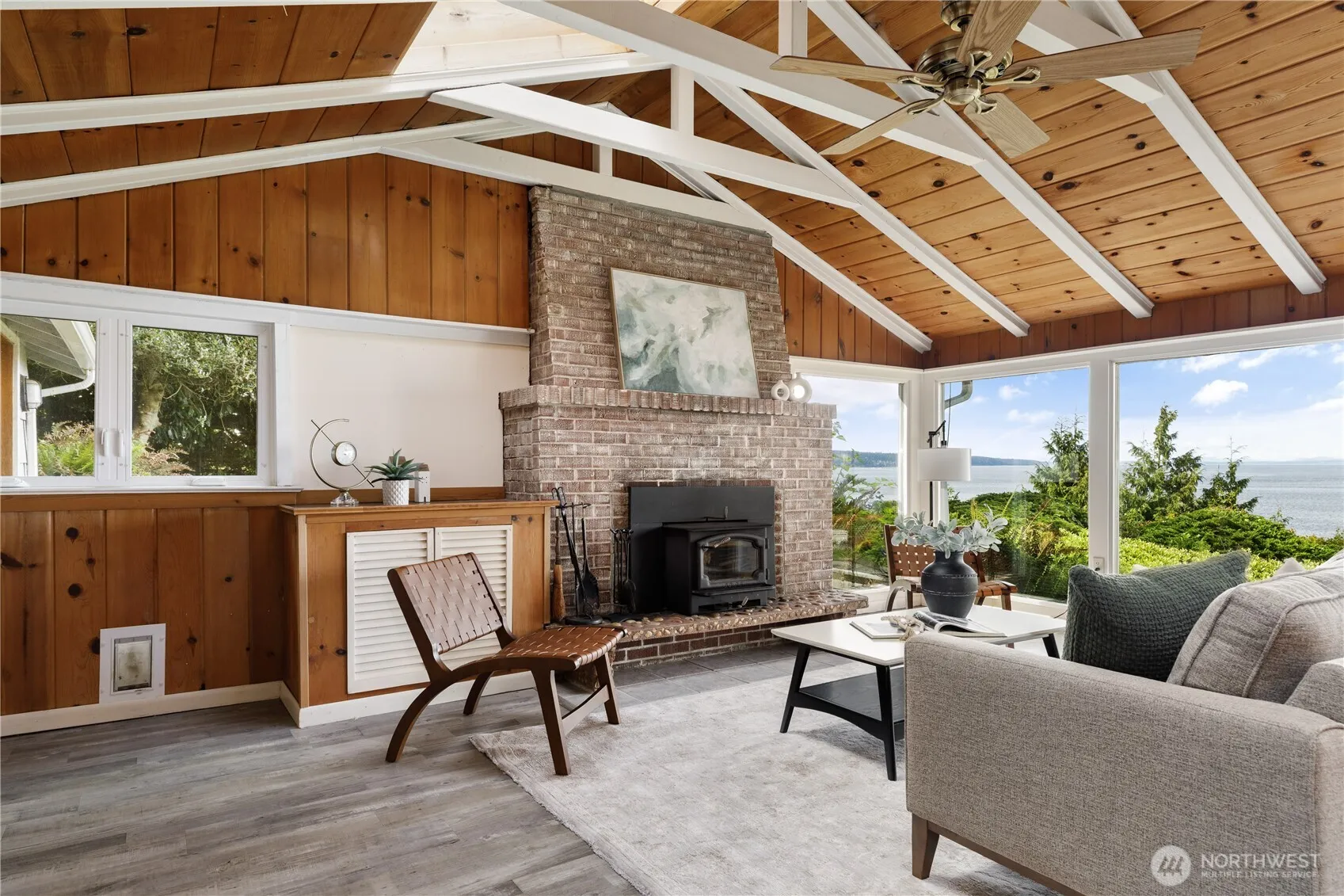 Imagine a front-row seat to stunning Saratoga Passage views with Baby Island and the San Juans on the horizon. With approximately 154 feet of waterfront, this gem offers a rare opportunity to style and curate your dream beach house. The single-level layout features vaulted ceilings, a charming hearth, original wood paneling, and a spacious view deck—perfect for watching whales, eagles, and seals. A metal roof adds durability, and the detached garage includes utility space. Just minutes from Langley’s seaside village and Freeland’s conveniences—this is island living at its finest. Bring your vision and unlock the potential.