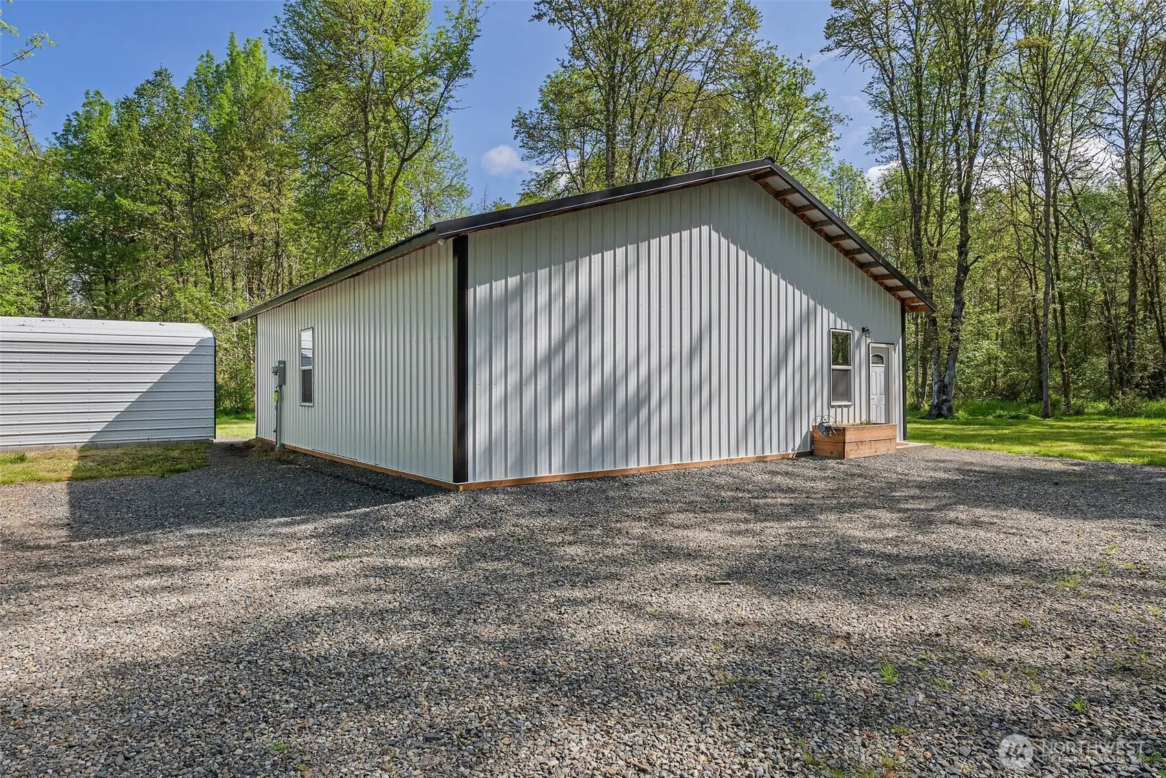 Tucked back amongst the trees- your country homestead awaits! Two parcels totaling 9.77 acres offer space and privacy, and the perfect foundation to build your dreams! Property has a shed/chicken coop, and a little fenced garden space. Mostly treed with a roundabout driveway, and quick access to I-5. Shop has polished concrete floors, open floor space, overhead beams, and a woodburning fireplace. Come take a peek and see if this country hideaway is for you!