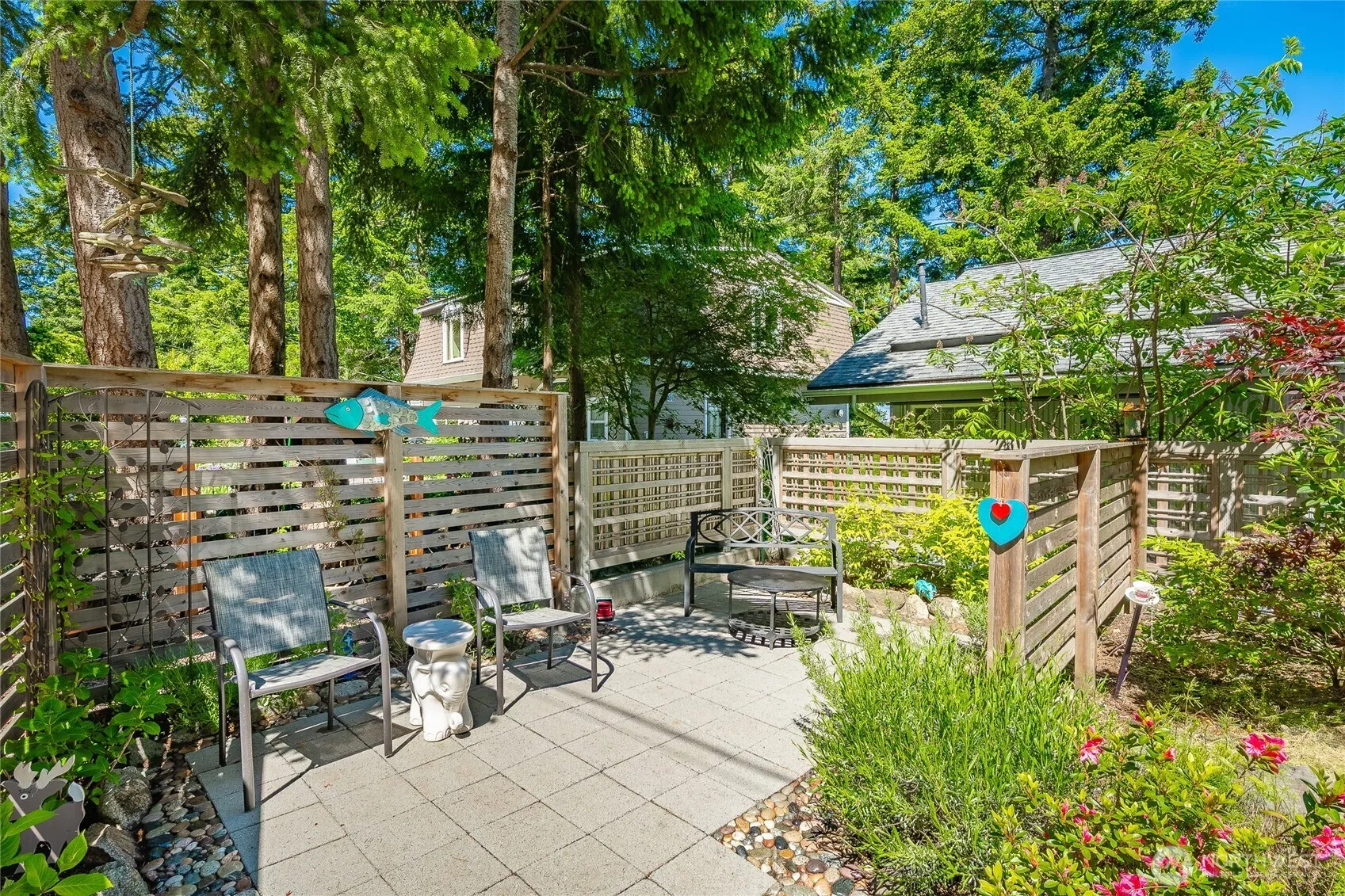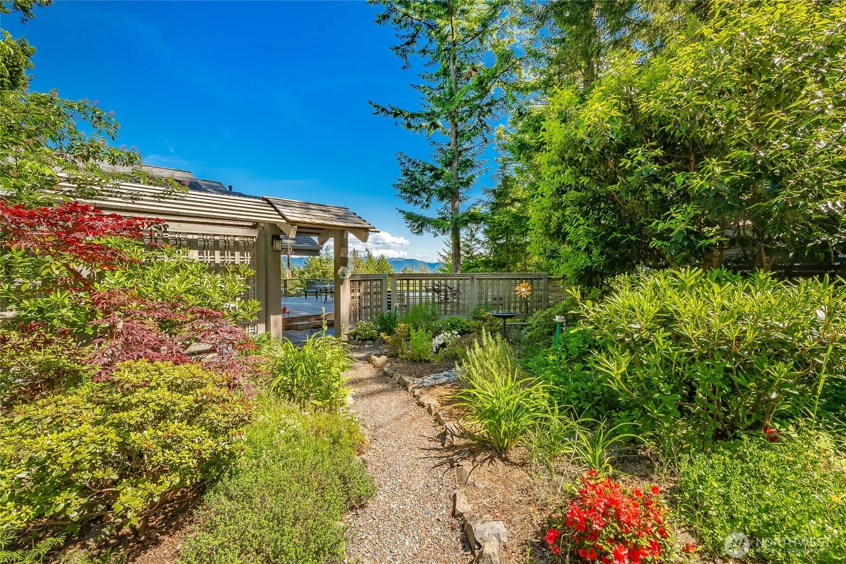 Beautifully remodeled home brings nature indoors with large windows, high ceilings & open floor plan. Created for functionality, decks & patios encircle the home complementing indoor living. This 1563 sf, 2 bedroom, 2.75 bath home sits on 2 lots with exceptional views of Mt Baker, Hales Passage & Portage Isl. Large garden spaces. Kitchen features stainless steel appliances, custom maple cabinets & granite counter tops. Primary bathroom w/ jacuzzi tub, separate shower & private deck, offers a sanctuary, spa-like setting. Guest suite, accessible via exterior & interior entrances, features 3/4 bath, gas fireplace & small kitchen area. Small loft adds additional storage area or an office. 5 min ferry ride delivers you to this magical paradise