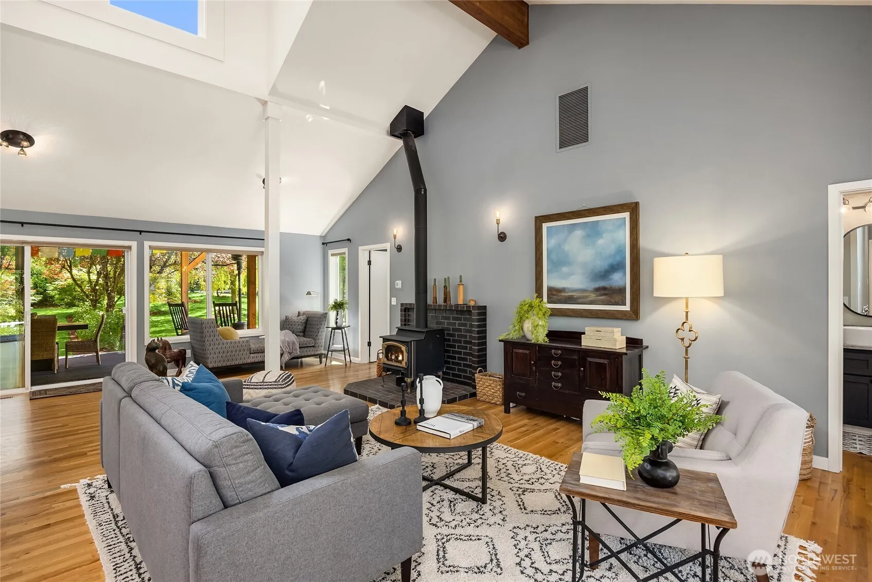 This is the Bainbridge Dream! Beautiful 3 bedroom one level home on 2 acres offers the opportunity for hobby farm or full equestrian experience. A magical property with stunning gardens, beautiful pastures and some of the oldest apple trees in Kitsap County. Fully fenced & cross fenced with an automatic gate, a greenhouse, & a 3 stall barn with paddocks and tack room. An additional 1800 sq ft carriage house can be used as a guest space, music or artist studio, car storage or whatever you imagine! The main house has been updated with new bathrooms and with 92 solar panels, your energy bill is non-existent! Don’t miss the temp controlled wine room in garage. Trails and saddle club nearby. Easy beach access on Dock street just 600 steps away!