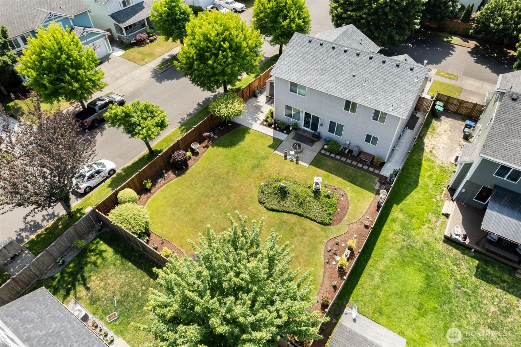 Welcome to this one-owner home, situated on a premium corner lot. Pride of ownership, well maintained and exterior personal touches. This is no ordinary backyard, it has been manicured and crafted with intention. Inside, discover three bedrooms plus a versatile flex room or fourth bedroom, two living areas on the main level, a loft and French doors spilling into your primary ensuite. Gas fireplace, skylights, ceiling fans & wired for a generator for year round comfort. Amenities include a new roof, new hot water tank, sprinkler system, pavers & an outbuilding for added convenience. Located just minutes from Black Lake, shopping, eateries, and the freeway. Trail access to nearby high school track and fields, and tennis courts.