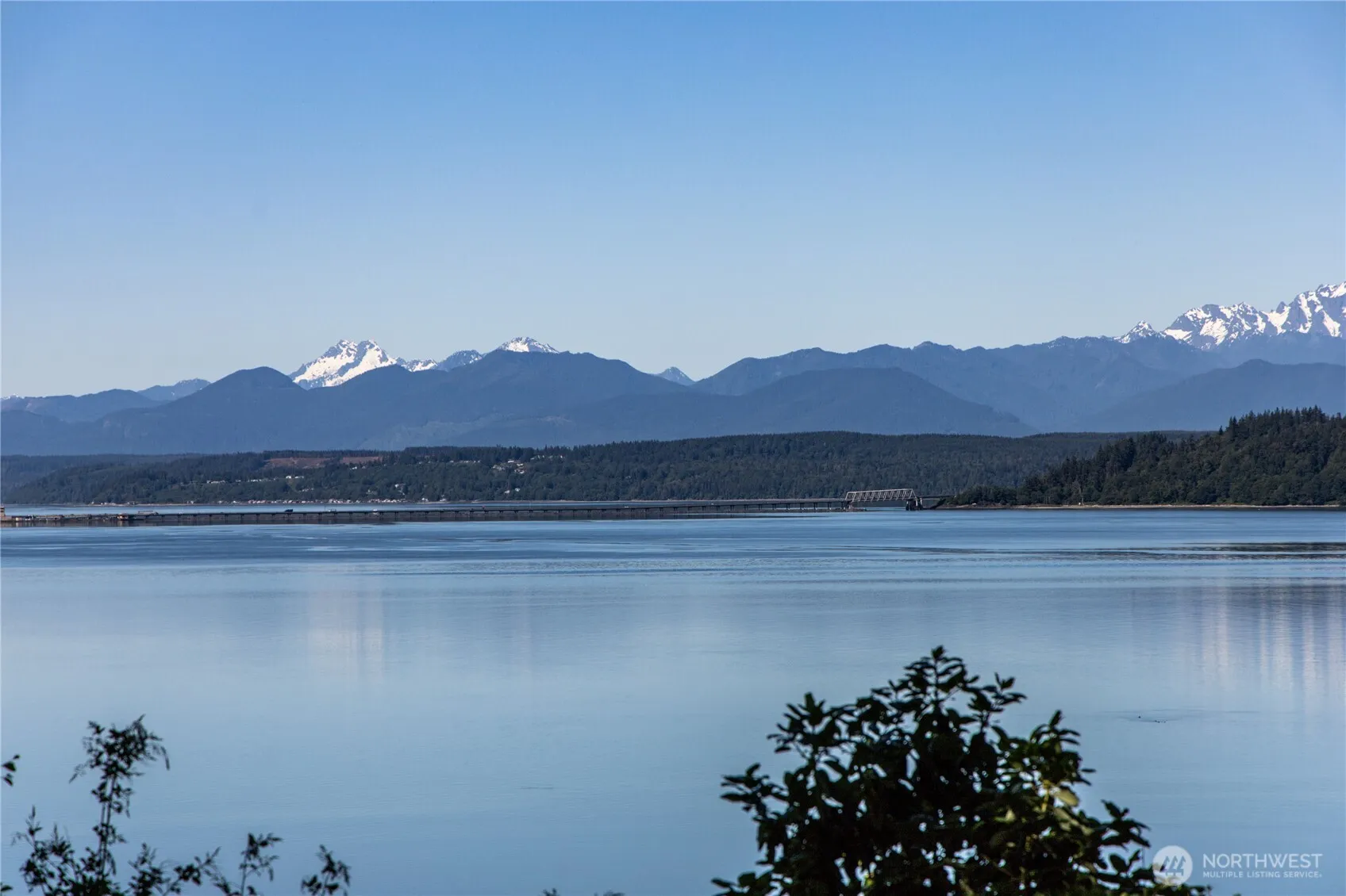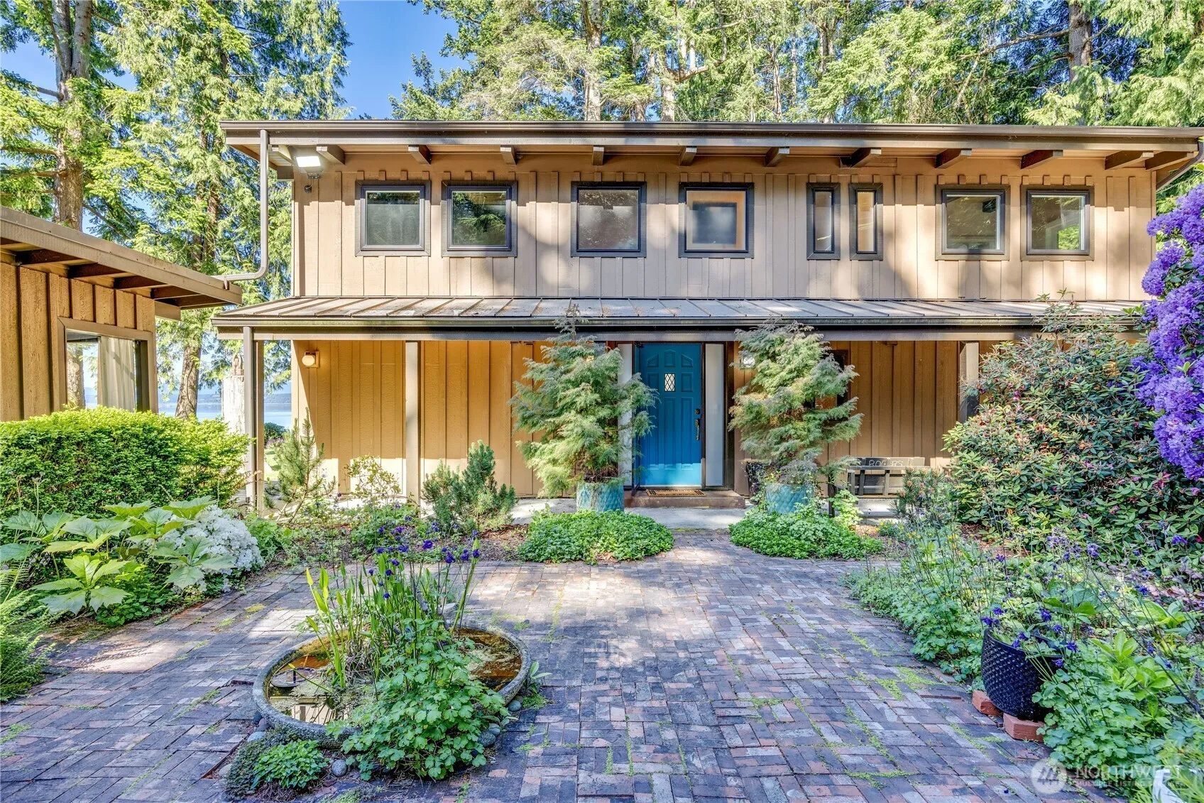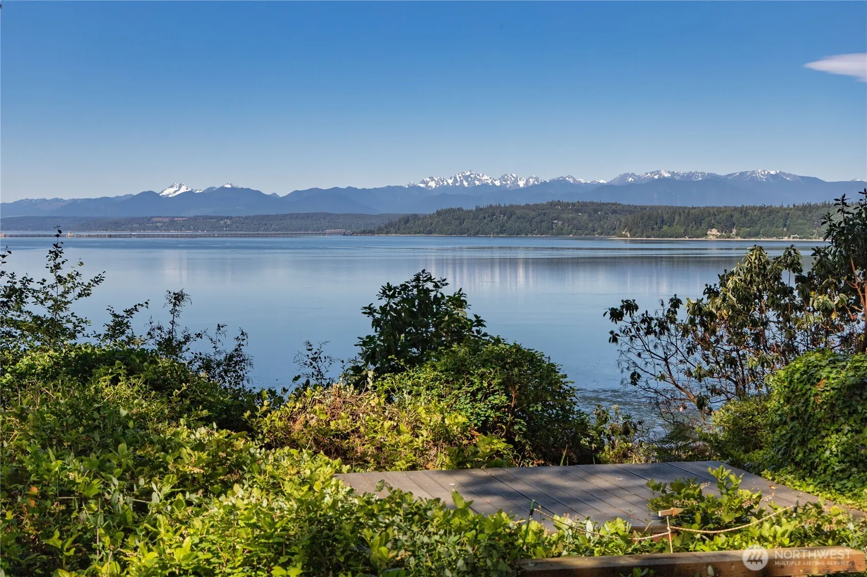 Stunning Hood Canal waterfront w/uncompromising sunsets over the Olympics & unbelievable 180 water views that include both Pt Gamble and the Hood Canal Bridge! This breathtaking one of a kind home was designed to maximize the view from every room! No expense was spared in the meticulous updating of this beautiful home from the gorgeous wood floors, modern kitchen & baths, & ultra cool space age lighting. This 2 bdr, 2 bath home has a great open floor plan, living room with expansive wall of windows, warm brick fireplace, den and guest bath on main floor. Very cool cat walk and bedrooms on upper floor! Add’l 432 sq. ft. cottage, detached 2-car garage, 2 shops, & greenhouses. Private winding DW and quiet setting. Property includes tidelands.