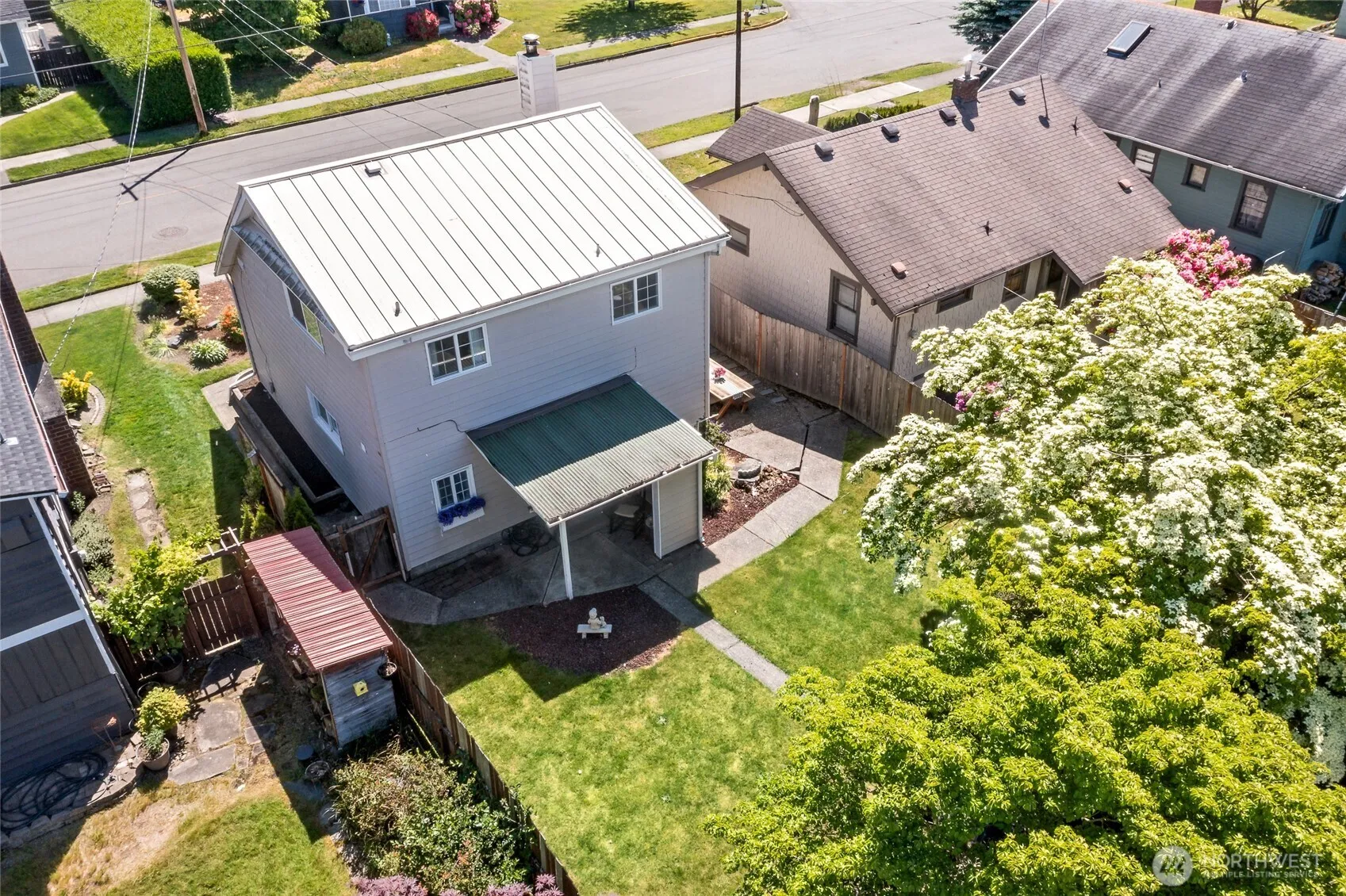 Charming Home in the Heart of Buckley! Move in ready 2 bedroom, 1 bath home with updated interior. Stainless steel appliances and solid surface counter top in the kitchen. Big primary bedroom. Great patio for entertaining and grilling. Fully fenced, landscaped backyard. Detached garage and alley parking. Walking distance to schools, shops, restaurants, post office and biking-hiking trails. Electrical panel updated in 2024. Come look at this cutie and fall in love with it and small town living.