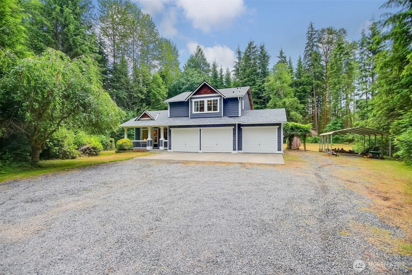 Sale Pending!!!! Located in the gated Pilchuck East community, this private 5.8 acre estate offers peace, space, and modern comfort. Enter through your own gated drive and follow a winding path to a secluded contemporary home. The flat yard features a custom concrete patio, ideal for large gatherings, while the covered front porch allows for year-round outdoor enjoyment. Inside, enjoy vaulted ceilings and spacious bedrooms, including a primary suite with full en-suite bath. A massive 32’x36’ shop with oversized doors provides ample room for an RV, boat, or storage. Recent updates include a NEW ROOF, NEW CARPET and NEW FLOORING. A six-person sauna adds the perfect finishing touch to this secluded estate.