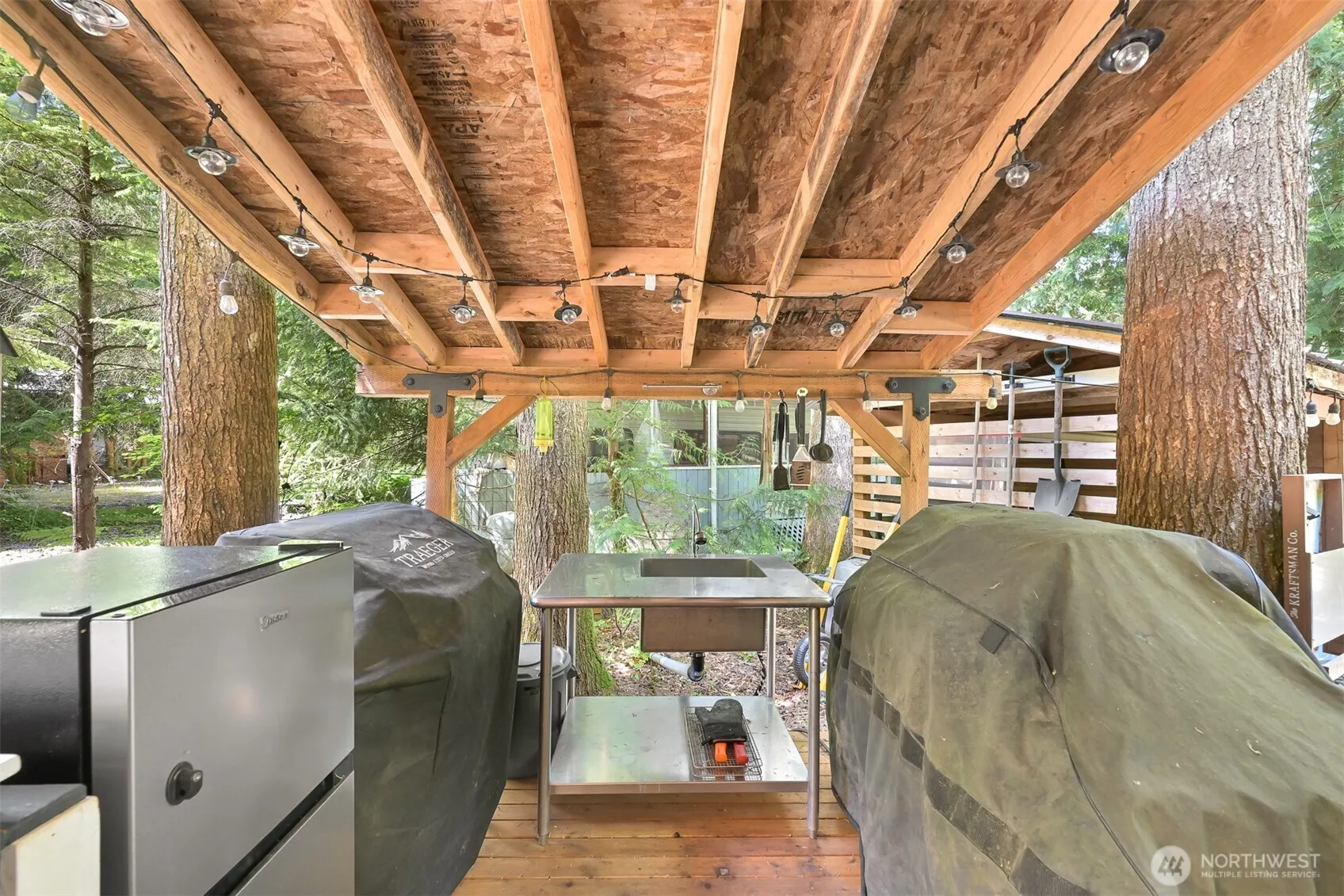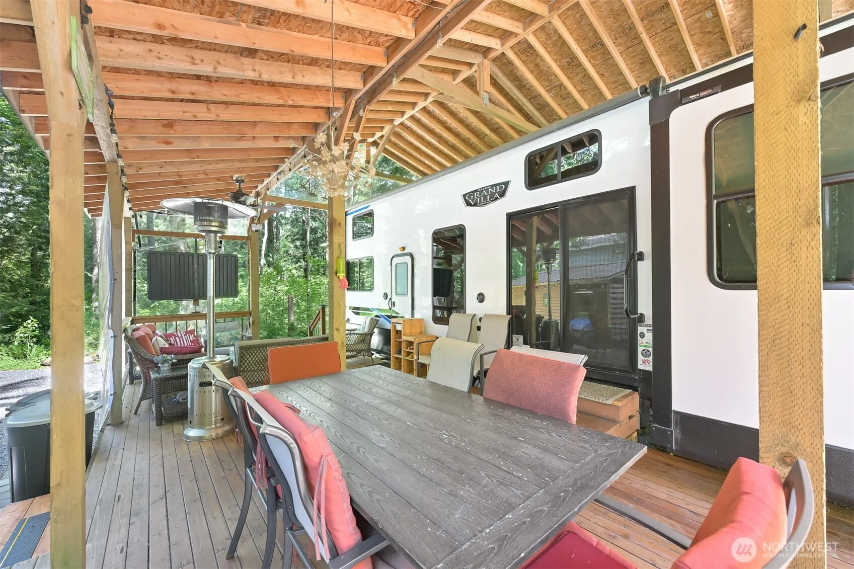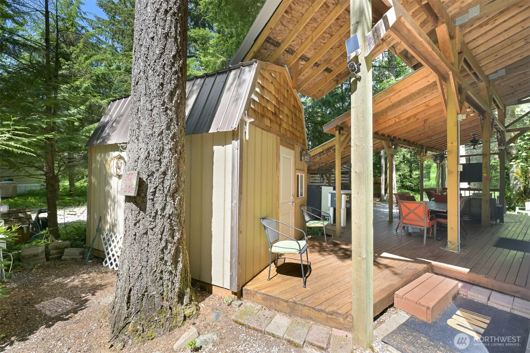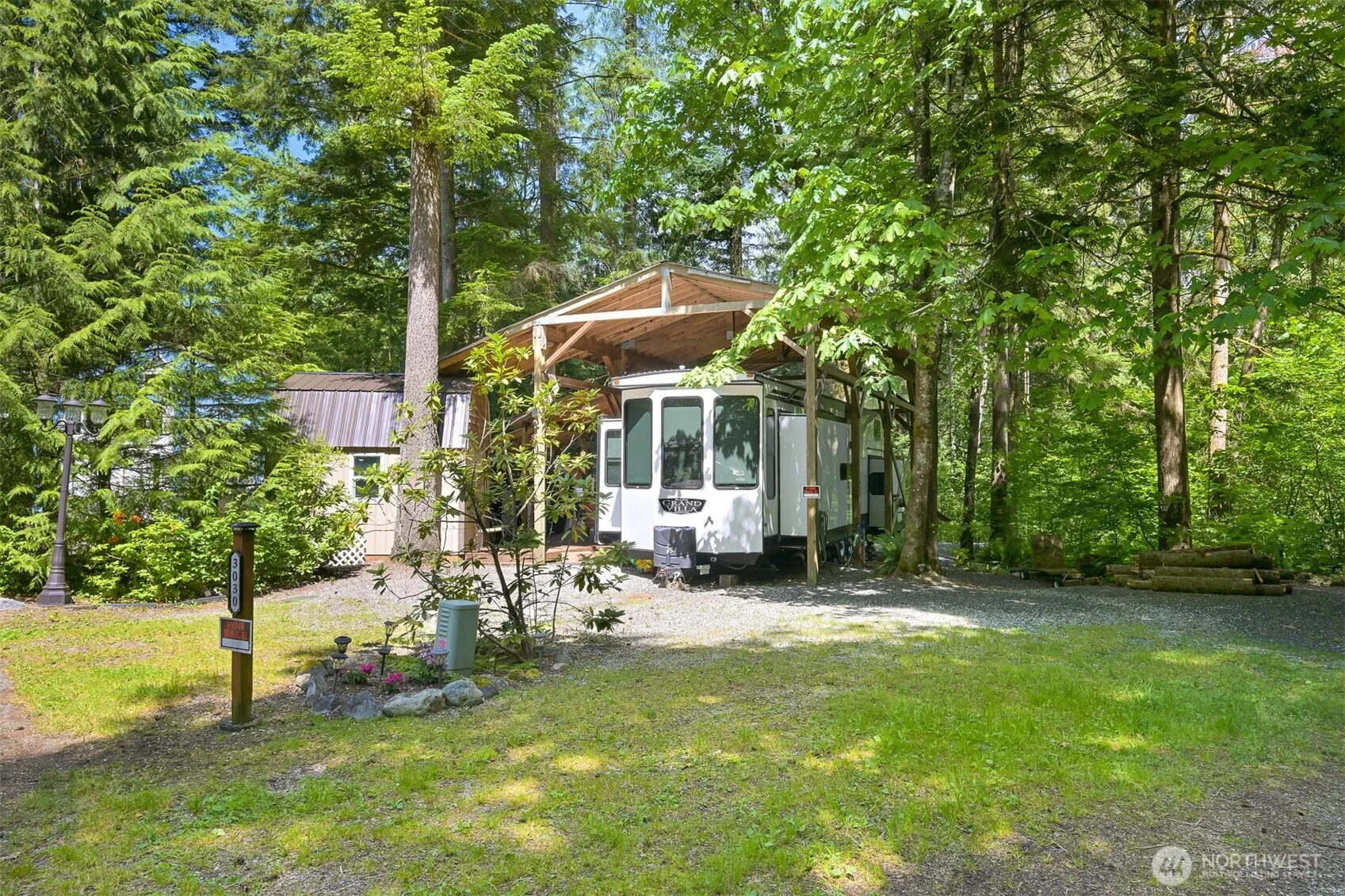 Beautifully maintained and updated vacation lot ready for you and your camper! Enjoy a spacious outdoor entertaining area with room to cook and host guests. The charming bunkhouse with loft includes queen-size beds. Lot includes a wood shed and storage sheds. Durable metal roof offers lasting protection from the elements. Located in a secure gated community with tons of amenities, including a year-round heated indoor pool, clubhouse, and more. Near parks, trails, river, and more. Zoned Recreational with 120-day use per year—your perfect getaway! All utilities are already on the lot for you and ready for you to connect to them. Golf cart included.