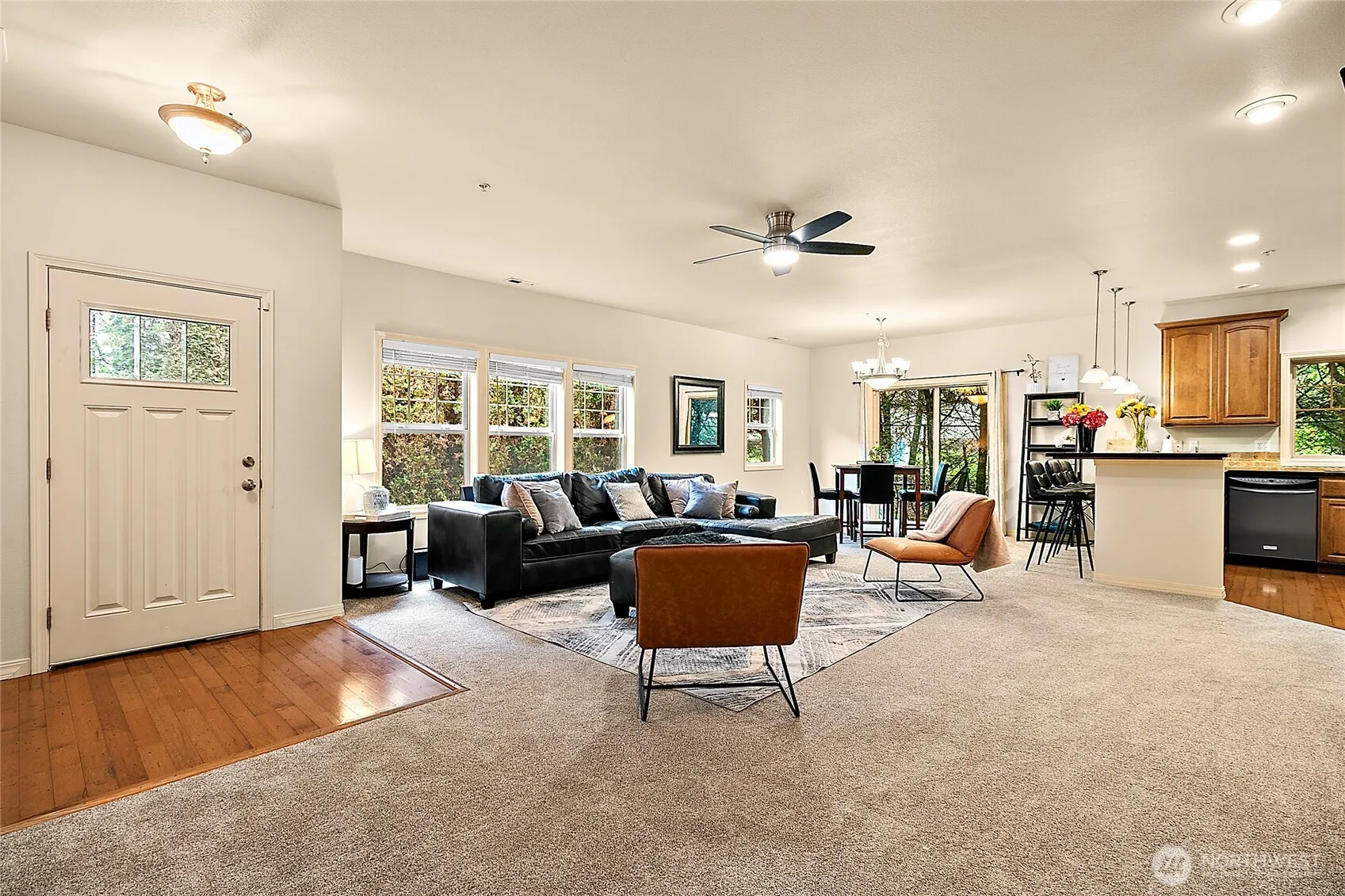 Welcome to this beautifully designed and secluded condo, offering a quiet retreat from the everyday rush. This inviting home showcases an open living area that seamlessly connects to a stunning kitchen with granite countertops, stainless steel appliances—including a new range—and a walk-in pantry. Throughout the townhome, you’ll appreciate the beautiful hardwood floors and fresh, new carpeting, creating a warm and welcoming atmosphere. Both spacious bedrooms offer comfort and privacy, with the master suite boasting a luxurious five-piece ensuite bath and a slider that opens to your own private deck. Additional conveniences include a private garage. Located just minutes away from shopping, dining, and Tahoma schools.