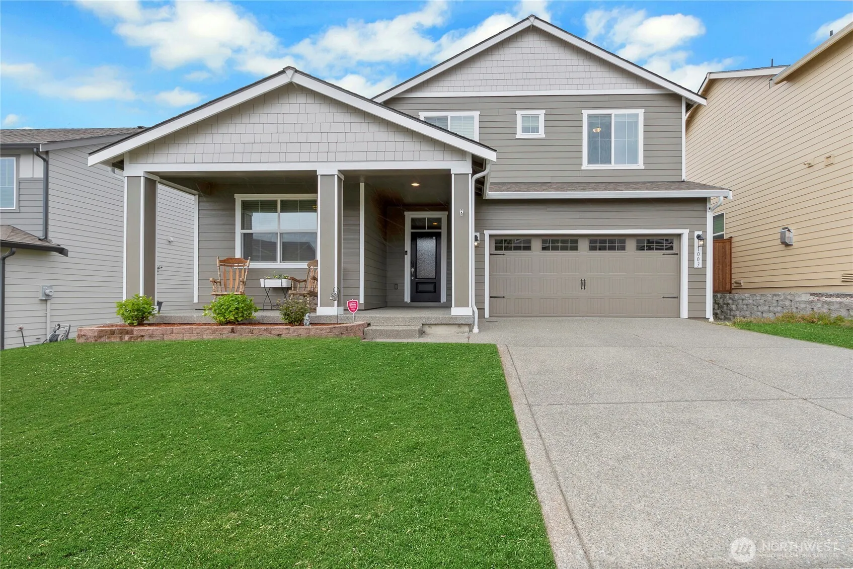 IMPROVED PRICE!!! Come and see this beautiful house before it is sold!! Enjoy life at Suntop Farms! With views of the mountains, you’ll love this 3-bedroom plus den, 2.5 bath home. Featuring a den downstairs for your home office or formal dining room or extra bedroom and oft upstairs w/ a Mt Rainier view for a reading nook, home schooling, or gaming room. All SS appliances in kitchen including a gas range, quartz counters, island, and walk-in pantry. All 3 bedrooms have walk-in closets. W/D stay. Irrigated and fenced rear yard with raised garden space. House features fresh exterior paint. Kids love the community playground/trails. Just move in and call 1003 Petersen Dr- HOME! FREE 1 yr buydown for qual buyers w/ pref lenders.