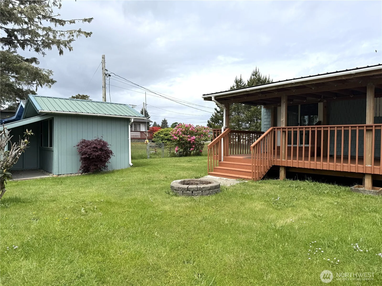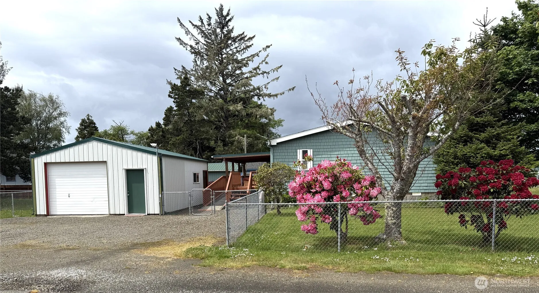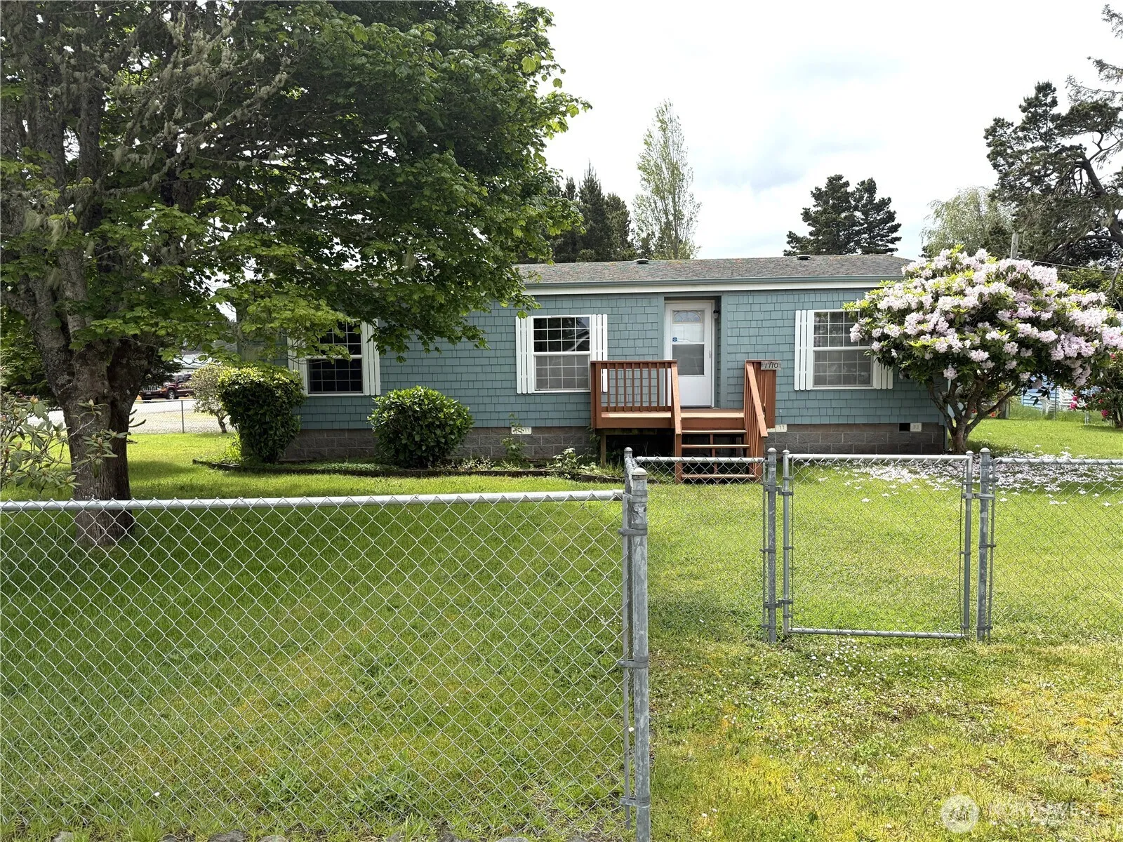 An ideal home in an ideal location. This very well-kept home has a great primary bedroom with private bath and walk-in closet. The second bedroom is also large enough for various uses. Off the dining room through the sliding glass doors is the covered deck that includes a full sized hot tub. Great for BBQ and entertaining. The double corner, fully fenced, yard provides a lot of room for play, gardening or just quiet enjoyment with your furry friend. Newer laminate flooring, a mini split for additional comfort in the winter and cooling in the summer, washer/dryer included. South two lots are available for private sale if buyer has interest in them.