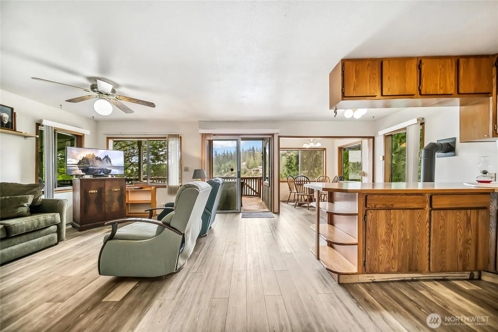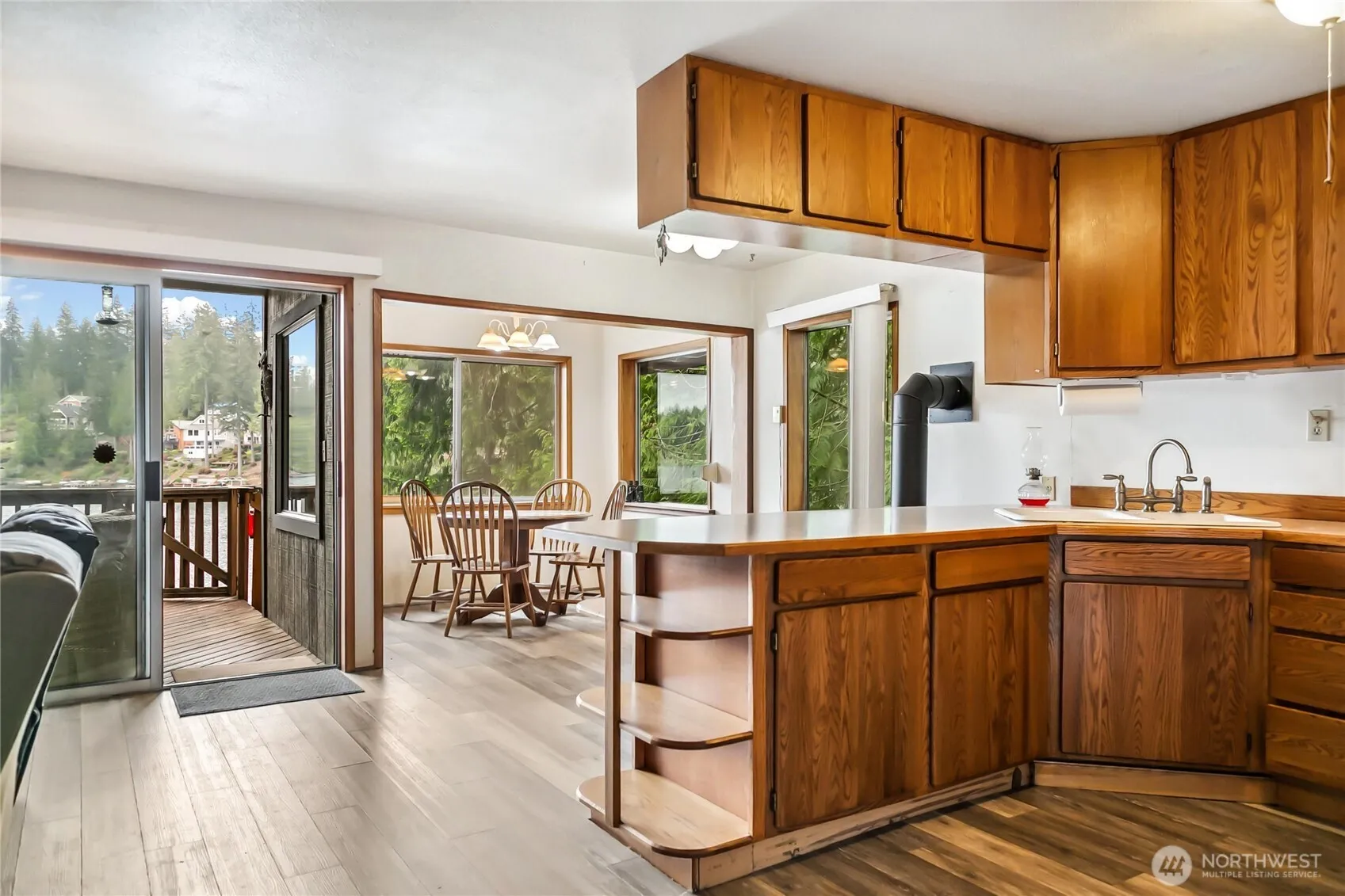 Welcome to lakefront living on beautiful Haven Lake, where you can enjoy water skiing, jet skiing, swimming, and fishing right from your backyard. This unique property includes two combined lots totaling .56 acres, offering approximately 100 feet of lakefront and your very own private dock. The charming two-bedroom cabin features a large covered wraparound deck, perfect for enjoying your morning coffee while taking in the stunning views of the lake. Both the cabin and the spacious two-car detached garage boast brand-new roofs, offering added peace of mind. The second lot includes a tear-down cabin, providing a range of possibilities and opportunities. Conveniently located close to town, shopping, trails and parks.