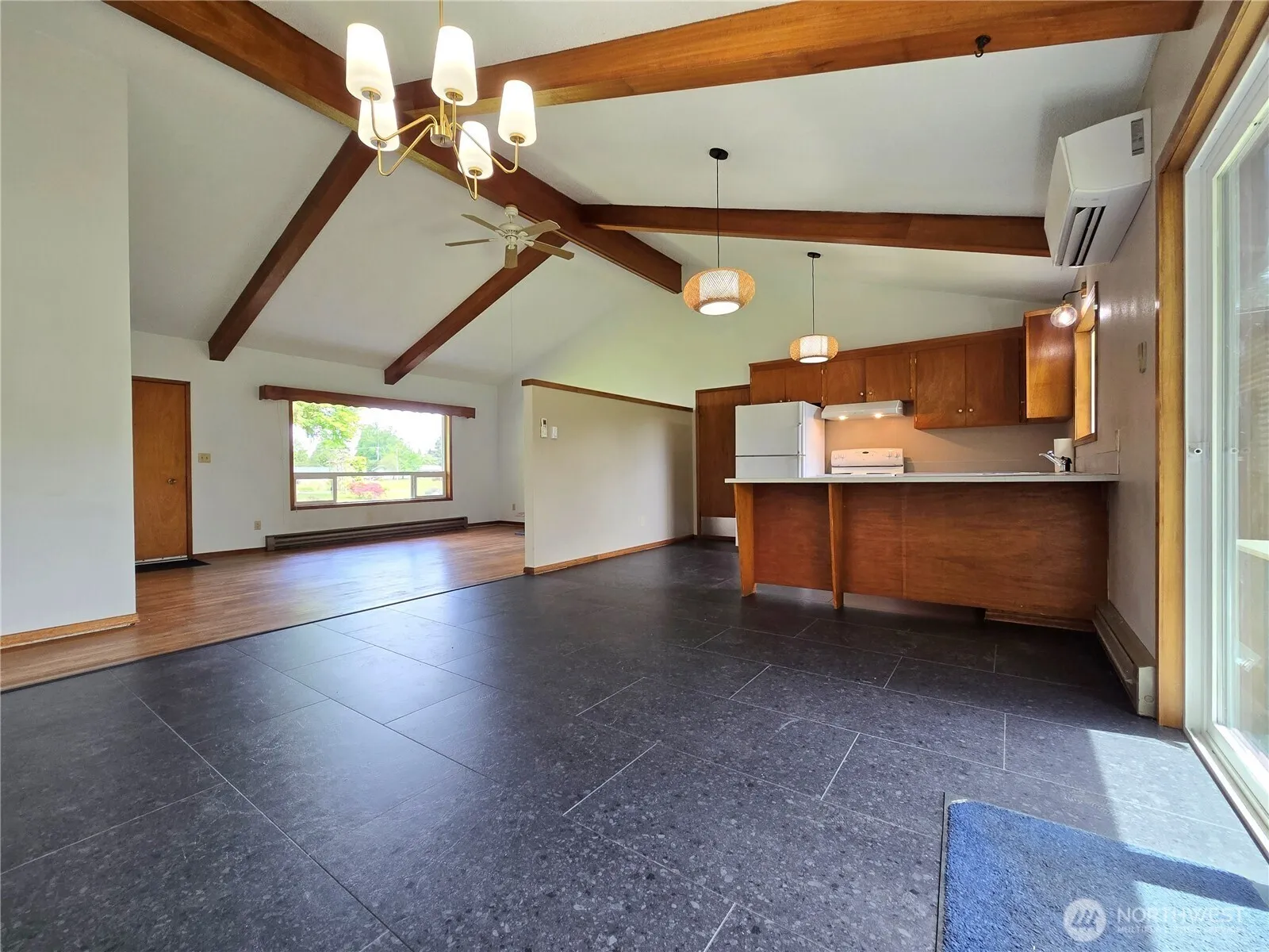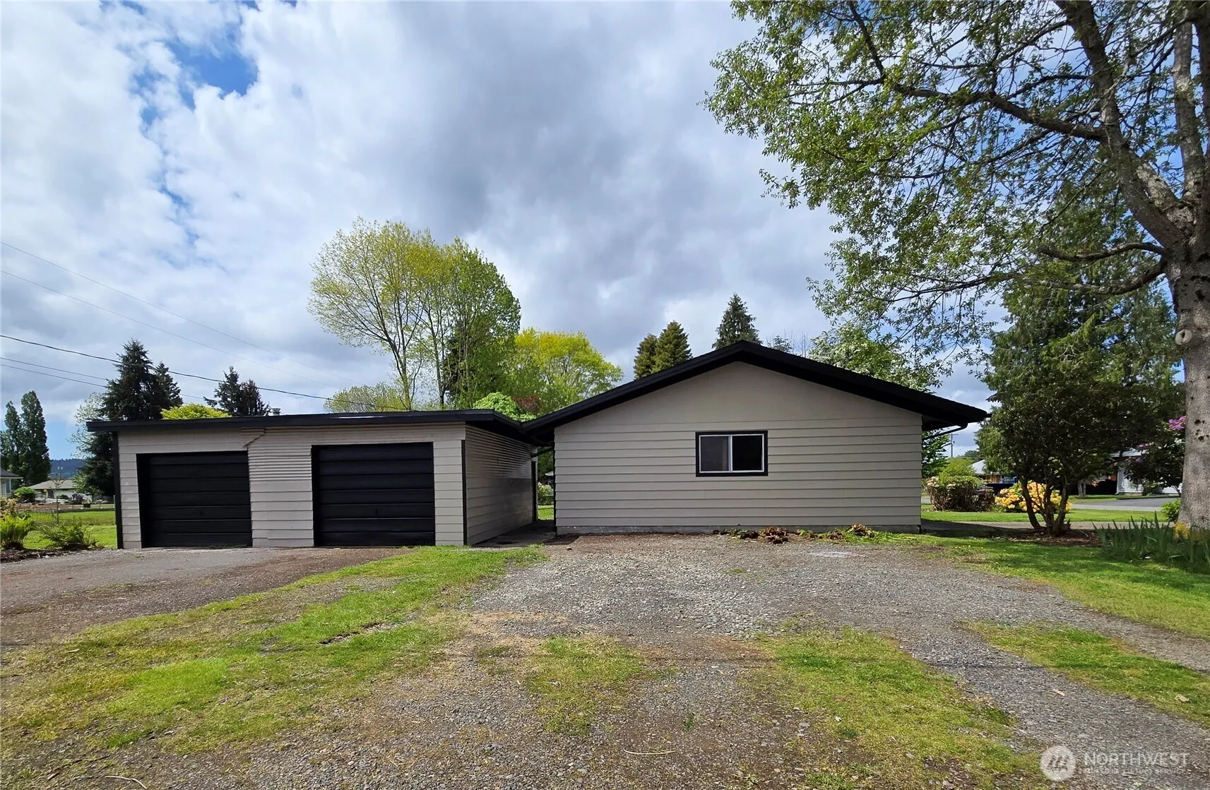 Vaulted ceilings and hardwood floors highlight this 1,410 square foot 3 bedroom, 1.5 bath home in an established neighborhood. Vinyl windows, wood insert and ductless heat pump keep the open concept living area comfortable year round. Enjoy the huge dining area with a new slider to the private back yard. Corner lot gives you easy access to the attached garage with storage area, office and 1/2 bath and to the detached 702 square foot shop. New paint, new laminate flooring in the kitchen and dining room and a great layout with plenty of room for vehicles and all of your toys!