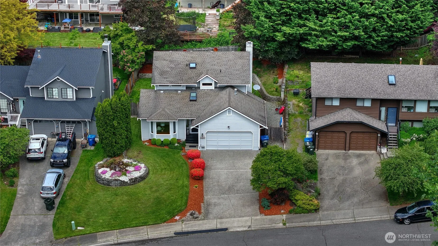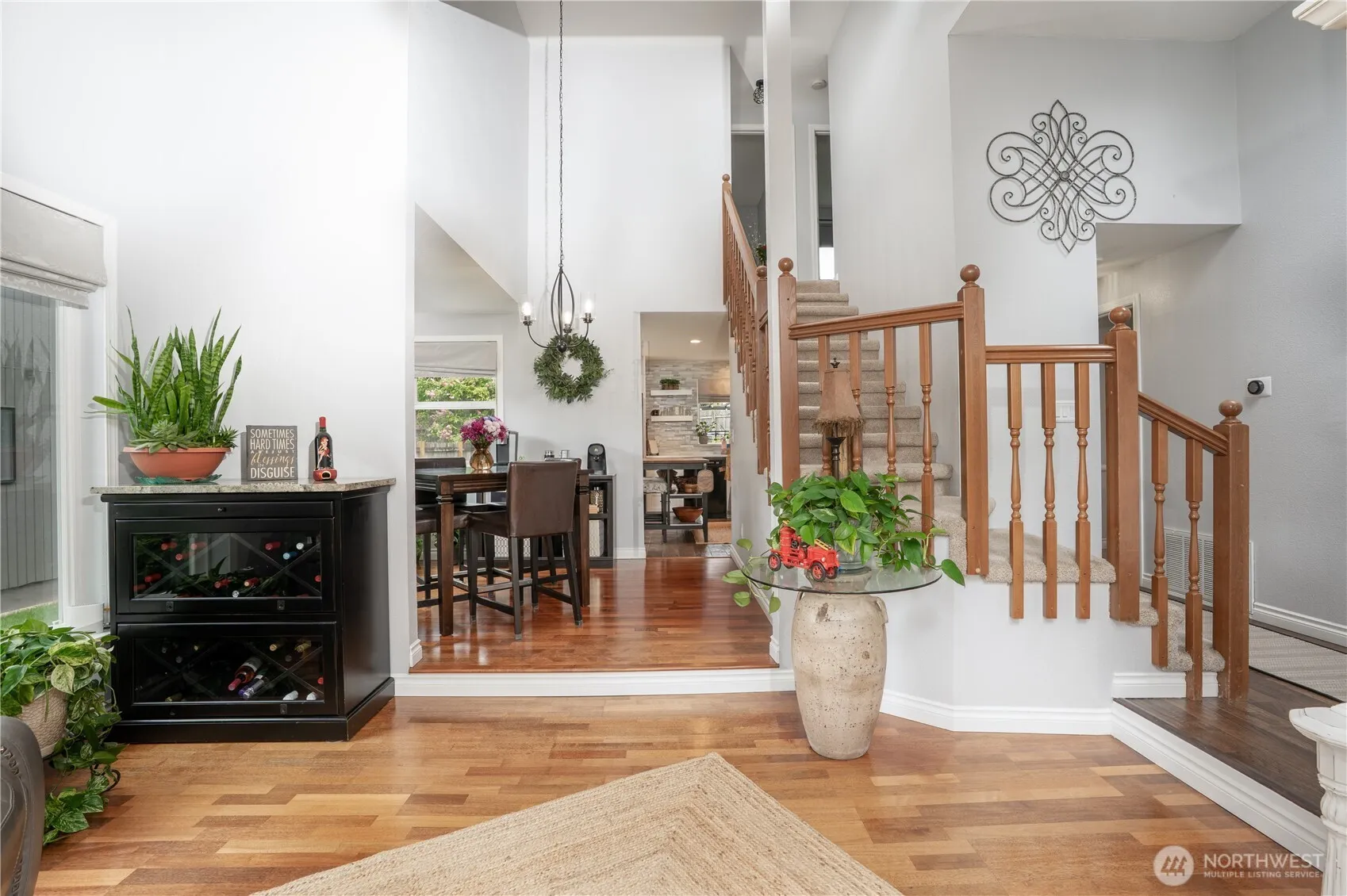 Updated beauty in charming Covington. Situated on a quiet street in Timber Hills, this home is dialed in for entertaining & relaxing. The kitchen reno is thoughtful & impressive with white cabinetry, custom pantry, stainless appliances, ample bar seating, tile floor & room for a chef’s island or bistro set. It is open to the bright family room w/fireplace & backyard patio access. The open staircase leads to a spacious primary ensuite and 2 more sizeable bedrooms. Fresh interior paint, updated windows & trim, modern ceiling fans & stylish lighting add polish. The vaulted ceiling, transom windows & skylights contribute to the bright & airy interior. For your comfort – a newer furnace, AC & a hot tub! Great shopping & dining are close by!