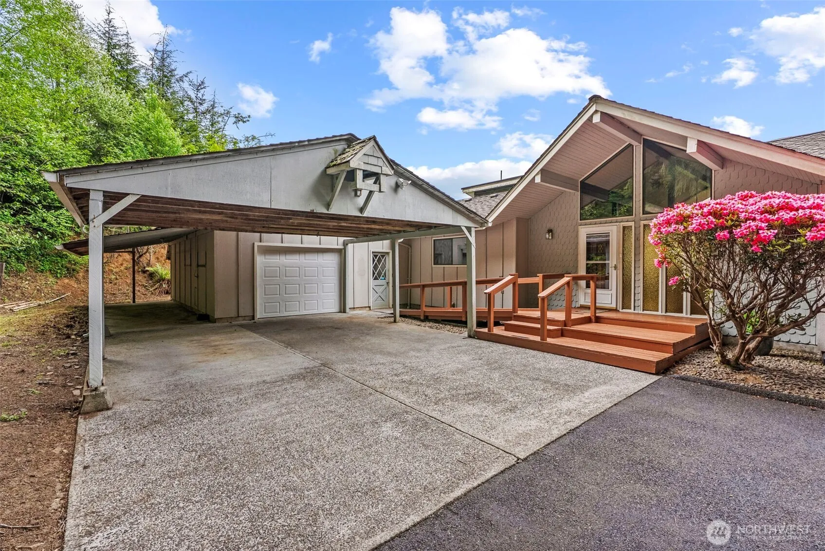 Enjoy the territorial, partial river views & sounds of nature in Skamokawa. On just over an acre, sturdy, stick construction home has 2 BR, 2 BA plus Sunroom/Atrium & detached guest quarters w/partial bath. Vaulted great room, lovely views, wood burning fireplace, large efficient kitchen w/newer stainless appliances, dining space & ISLAND seating where the views continue. Asphalt parking apron, garage & two carports afford space for vehicles, guests, toys & equipment. Private & peaceful one-owner home perched on a plateau at the end of paved driveway w/great bones awaits personal touches from new owner. Well & septic, furnace & heat pump, workshop, covered wood storage, ramped entrance to front deck, back deck off atrium & mature landscape.