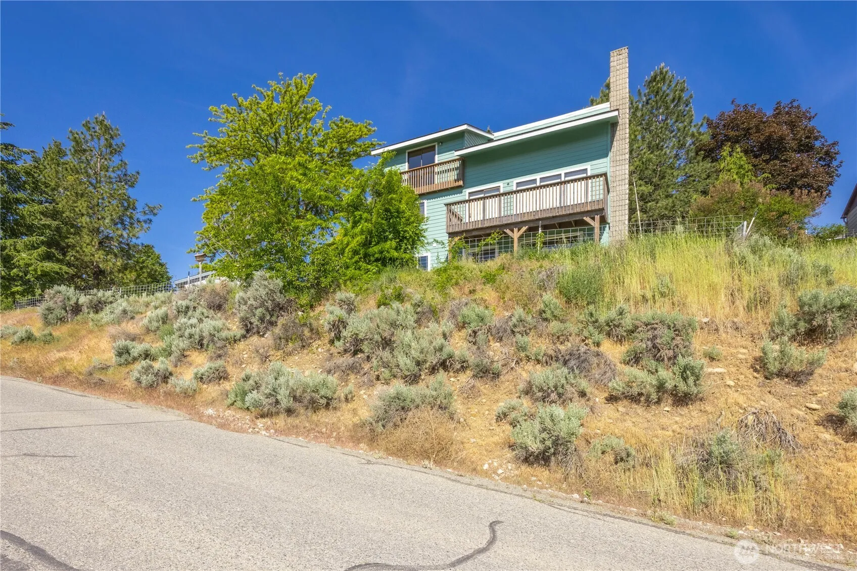 Enjoy captivating territorial views from 132 Delmav Avenue in Okanogan, just up the hill from downtown. This 2,576 sqft 3 bed/3 bath home lives large over three floors. Enter on the main level to the living room with vaulted ceilings and kitchen with breakfast bar and formal dining room. Two bedrooms upstairs, including the primary with full bath and walk in closet. The lower level is home to another massive bedroom as well as a third bath and family den complete with its own gas stove. Updates include a new exterior siding and paint, new HVAC system, deck, garage door, gutters and lower level windows. Fenced yard for your pets, with garden space and mature trees to provide plenty of shade. Paved driveway and plenty of parking.