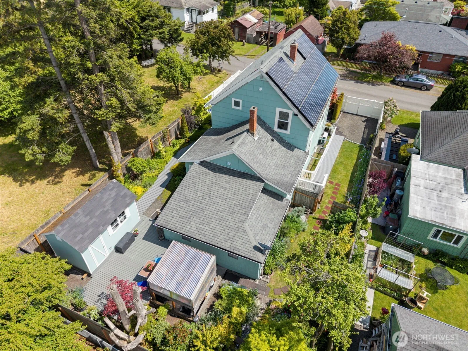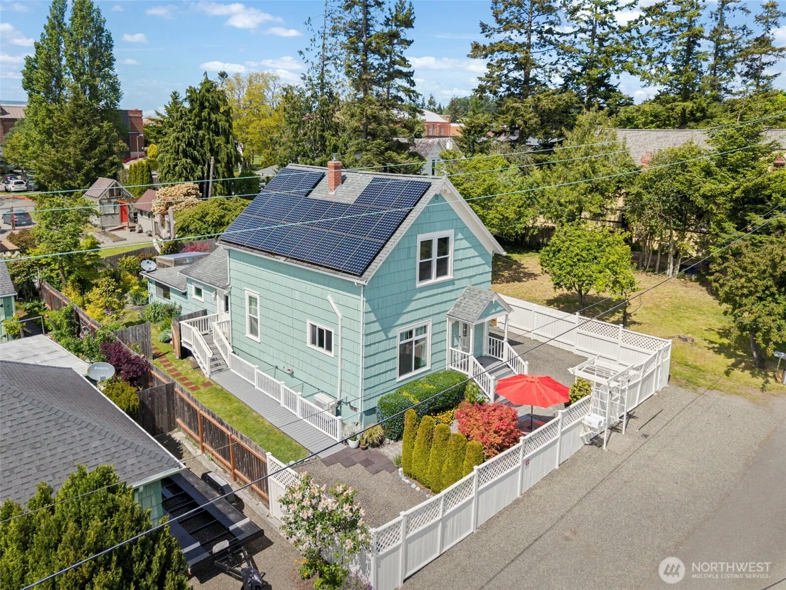 Discover this updated & energy-efficient Victorian home nestled in Uptown. Enjoy views of Mt. Rainier & peek-a-boo glimpses of PT Bay. This spacious 3-bed, 3-bath home features a versatile floor plan w/ 3 separate entrances—ideal for multi-generational living or rental potential. Major upgrades include a reinforced foundation w/ seismic retrofitting, energy-efficient windows, solar panels & an EV car charging station. The primary bed is on the main level, while upstairs you’ll find 2 add’l bedrooms—1 currently configured w/ an efficiency kitchen. Outdoors, you’ll love the established gardens that bloom year-round, RV parking, a lg storage shed & wiring for a hot tub. Historic charm, modern updates & flexible living—all in a prime location!
