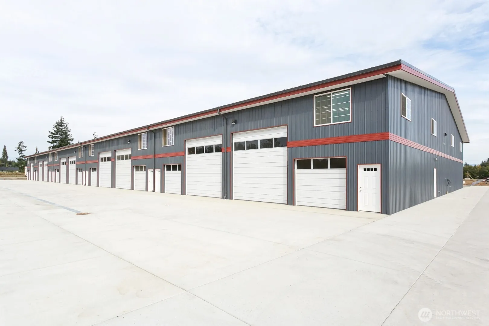 This unit is located in the Pioneer Flexspace Condominium. It features approximately 2,200 sq ft storage unit centrally located in Whatcom county off I-5. This unit is approximately 30’x 50’ on the ground level with a 14’x50′ timber framed loft. This unit has two overhead doors (14’x14’ & 9’x8’), a main entry door, vinyl windows, smooth concrete floors, 3/4 bathroom, utility sink, 75k BTU natural gas heat, 50 gallon HW tank, 100 amp panel with a 50amp RV plug, wired for communications with Comcast, and fully sprinkled. Individual address and mailbox with each unit. Completely turnkey! Use it as an investment rental property or for one’s own use.