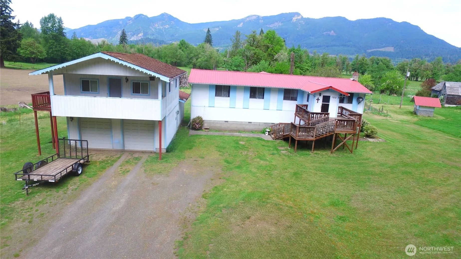 DRASTICALLY REDUCED! Lovely home on level 2.31 Acres (2 sep. parcels). Discover exceptional value! Spacious 1,440 sq. ft. home featuring 3 beds, 2 baths + bonus room: garage w/Shop area & upper Living Quarters. Enjoy spectacular panoramic MT views from your front & back decks, including iconic Mt. Rainier & picturesque valley scenes, close to Randle Golf course & many recreational areas!. Features: Lg. Main bedroom w/relaxing jetted tub. A comfortable living room w/ a wood stove for cozy evenings, a formal dining room, & a convenient kitchen open to the fam. room. The bonus room is also perfect for an office, a guest bed, or storage. Functional, rustic exterior elevator! Newer heat pump, garden space, fruit trees, Well/Septic & much more!