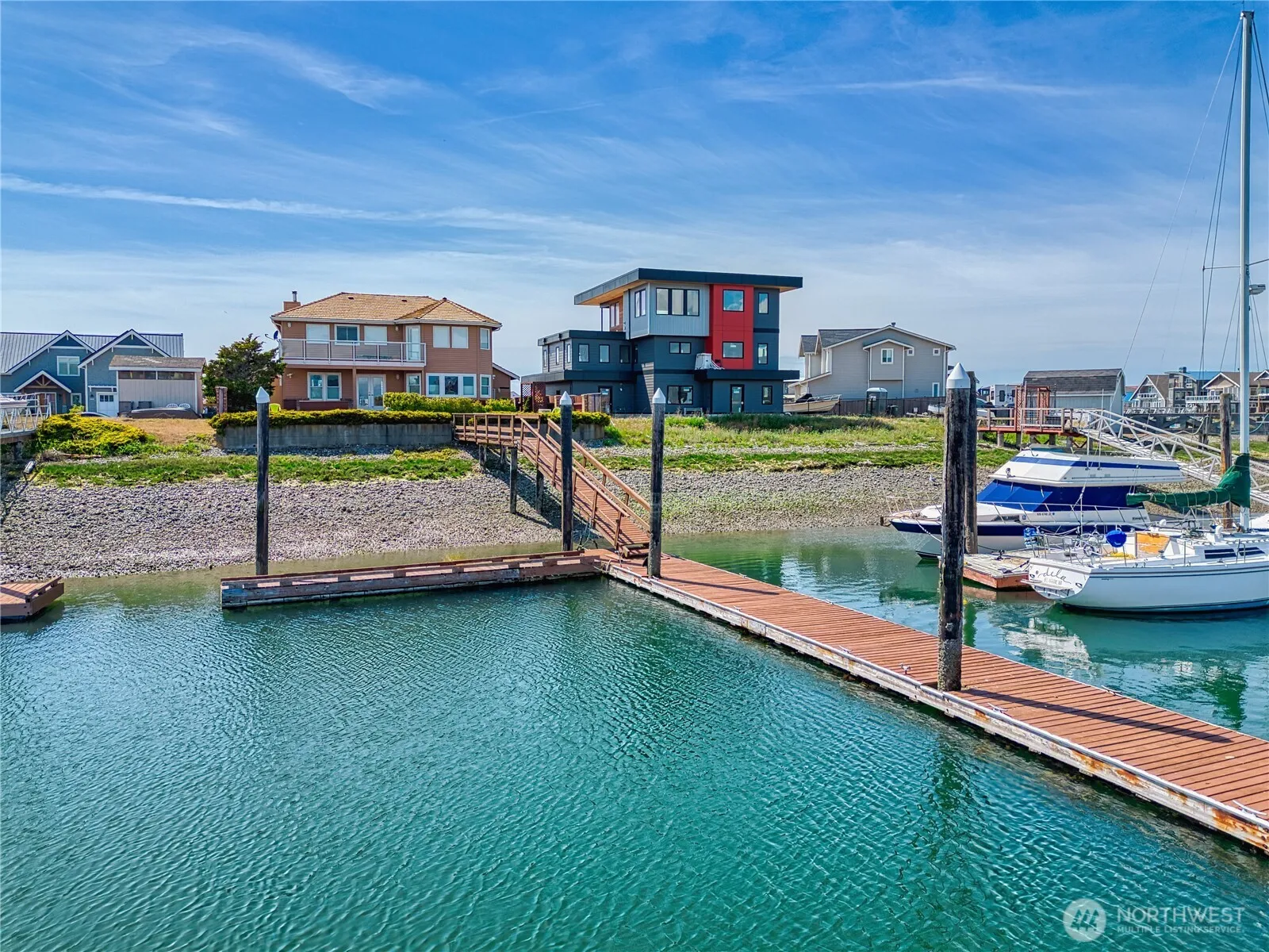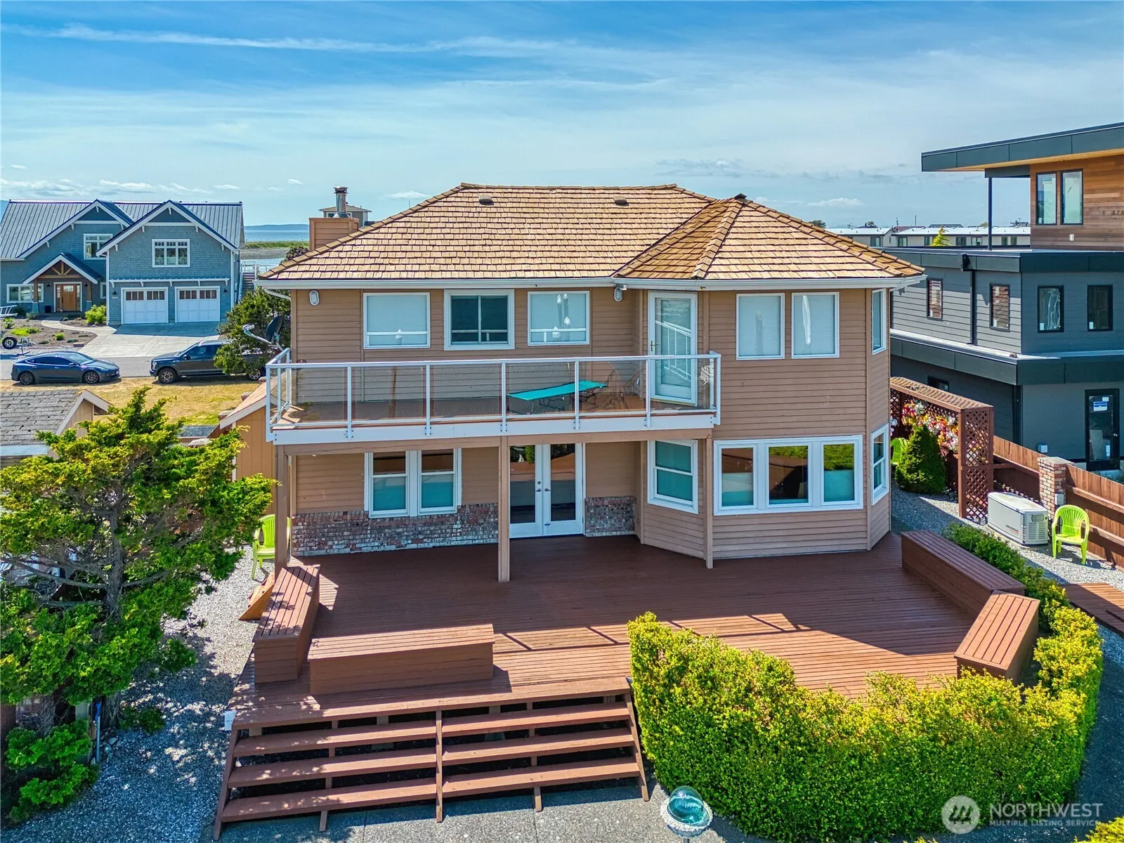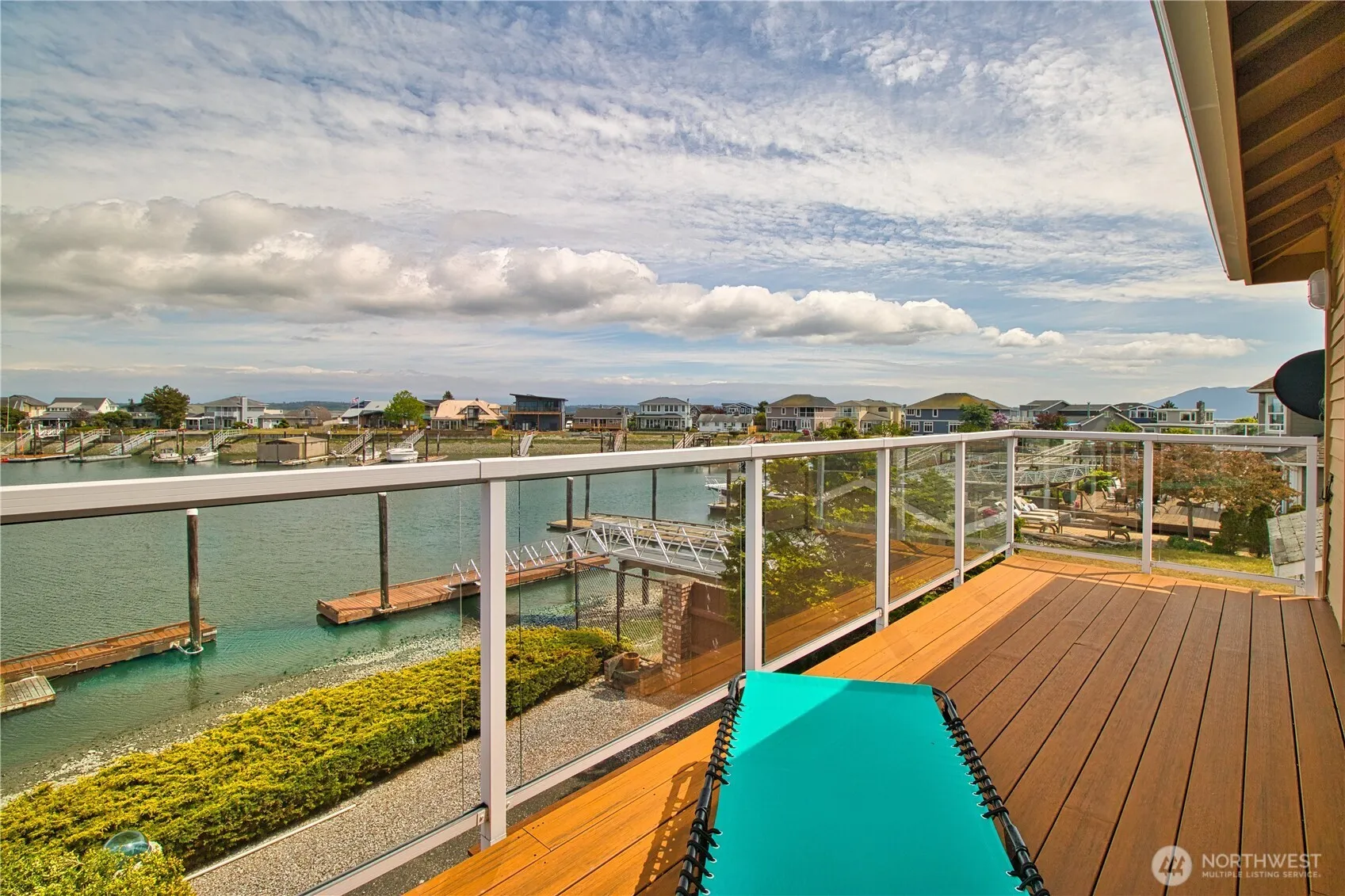 Enjoy panoramic views of ocean and mountains with 75 foot private dock. This meticulously maintained custom home features 3 decks and an open floor plan ideal for entertaining and spacious living, a huge kitchen island with a downdraft cooktop, and a large double oven. Recently upgraded Andersen windows to help you enjoy the views year round. Boaters can enjoy a straight shot out of the marina to the San Juan Islands, or you can stay home in an open yet private living space with access to all the amenities offered to the Sandy Point Community.
