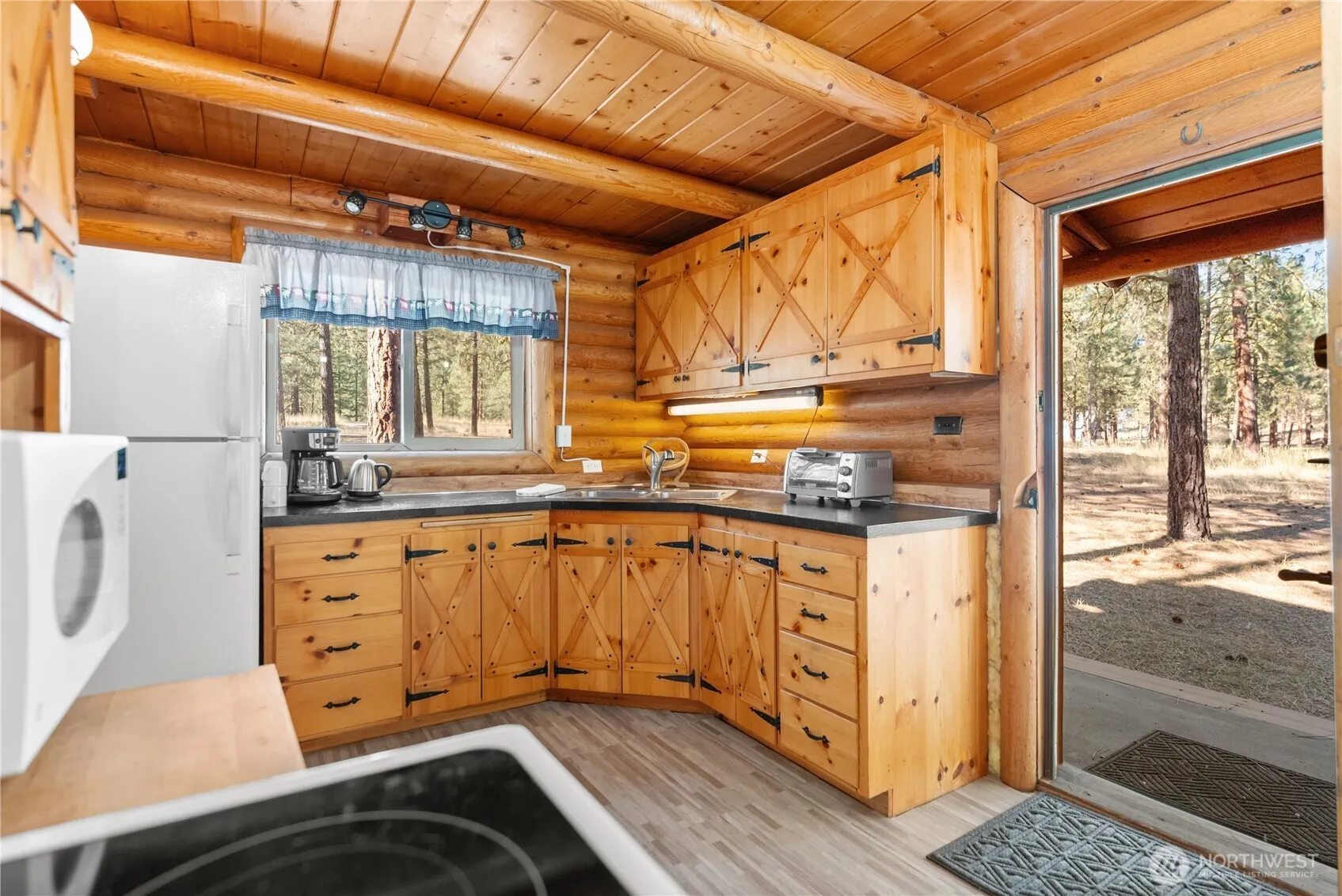 Wonderful log cabin set amongst pine trees on over 2 acres. Solid home featuring one bedroom plus loft living space. There are two fireplaces to keep the home cozy. Enjoy your great room that opens up to the large deck – perfect for entertaining or spending Fall evenings on. Plenty of room for toys and storage in the spacious detached garage/shop with carport as well as the unfinished basement. Great proximity to town and trails. Cool down in the community pool in the summer as well as soak up the year round, near by recreation in the Methow Valley like hiking, biking, fishing, hunting, & skiing. This cabin would make for great full time living or be a wonderful vacation house with easy lock & leave maintenance. Welcome home!