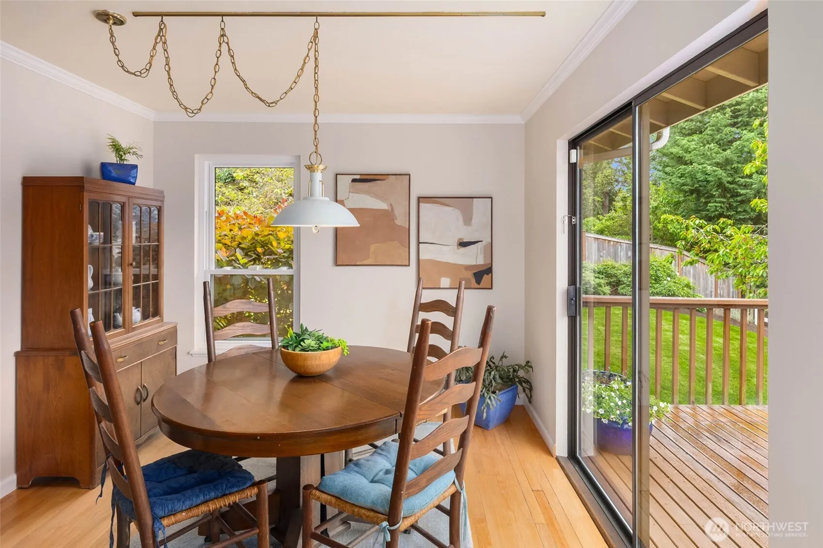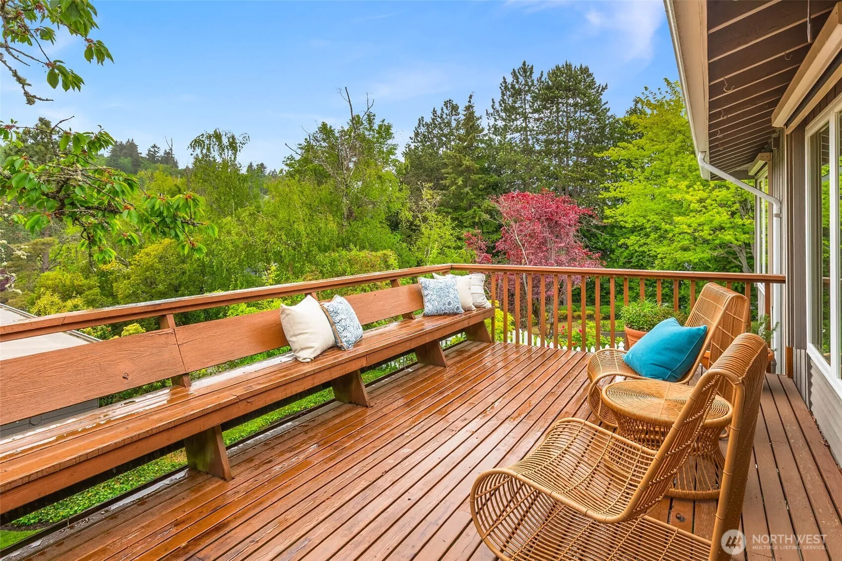 Welcome! This charming, inviting home extends a warm sense of arrival. Light-filled 3BR/3BA layout features a spacious living rm w/large windows framing peaceful green territorial views. Dining area off kitchen opens to a spacious deck—ideal for afternoon sun & vibrant sunsets! Lower lvl offers a rec rm & direct yard access, w/a flexible bonus space ideal for home office/gym/hobbies. Full bathroom & large utility rm complete the lower lvl. Beautifully landscaped corner lot is filled w/mature plantings & seasonal color w/ample room to play/garden. Located a block from downtown MI, w/easy access to Sunday Farmers Market & summer concerts at Mercerdale Park. Surprisingly private, yet close to everything, this is a place to truly feel at home.