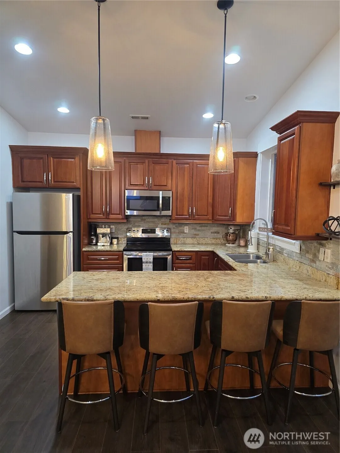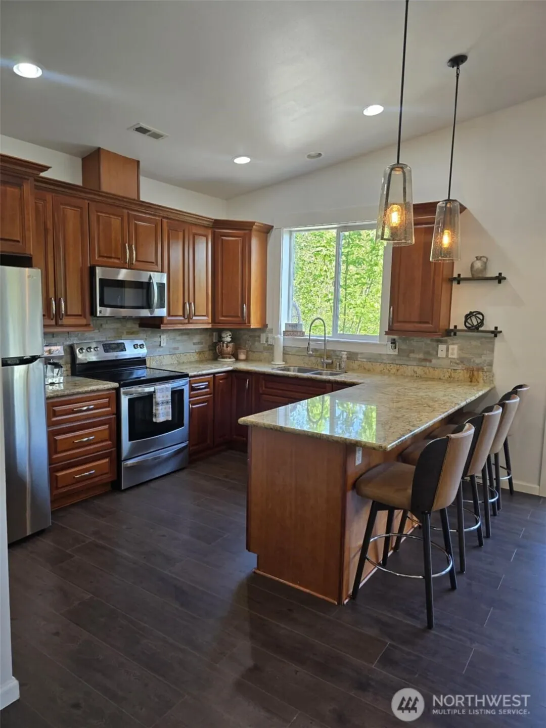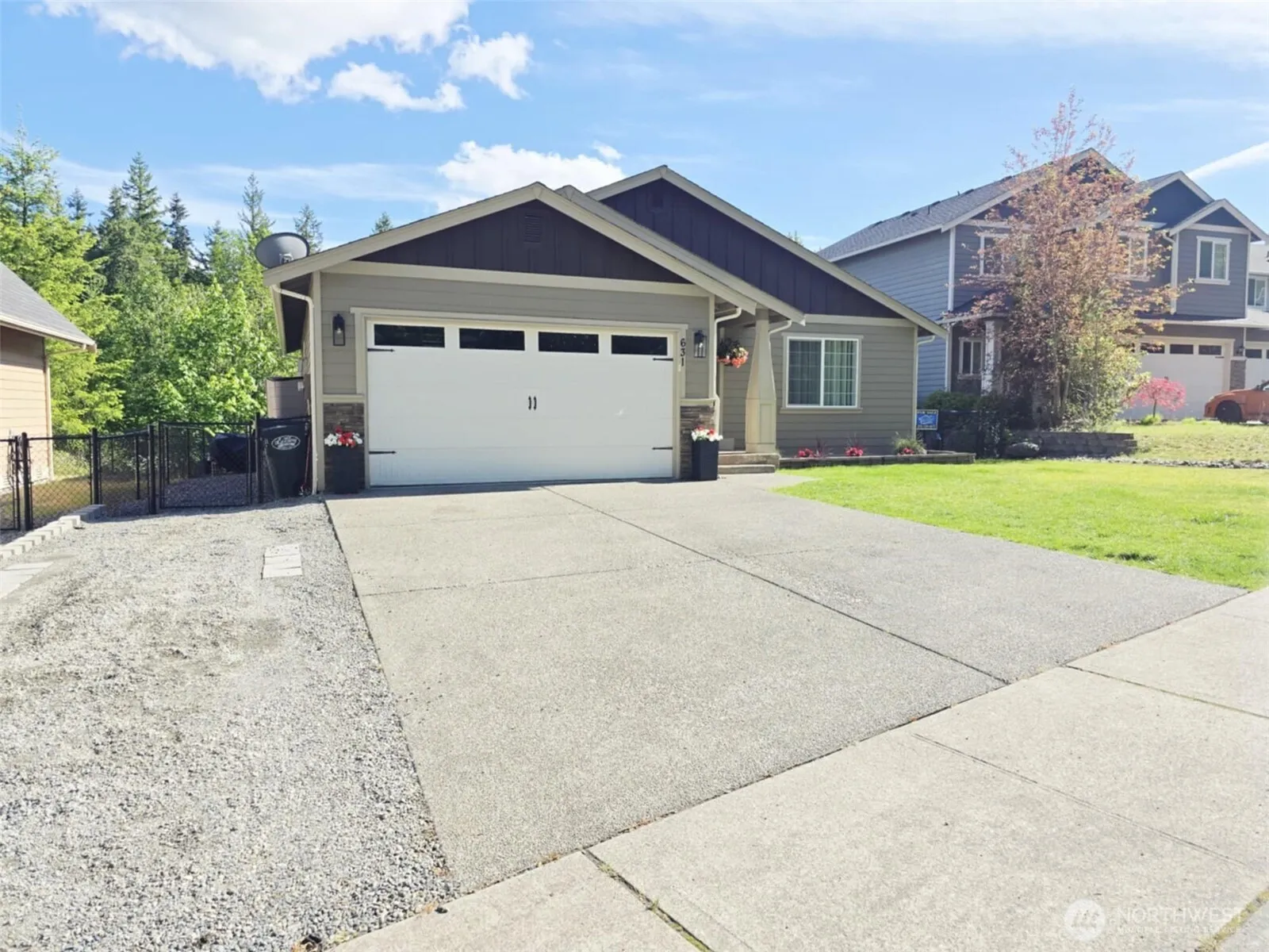 Step into this stunning open-concept 3-bedroom home with Mt. Rainier and territorial views off the spacious deck. Thoughtfully designed with cathedral ceilings and 2-full baths including one off the primary suite. Modern kitchen boasts stainless steel appliance and breakfast bar. Double car attached garage is perfect protection for your automobiles plus great for storage. RV parking space will accommodate up to 30′ vehicle. Stay cool and comfortable inside this summer with central AC. Watch deer and elk while enjoying the Mt. Rainier view from the large deck. Back and side yards are fully fenced. Don’t let this incredible home slip away – come see it today!