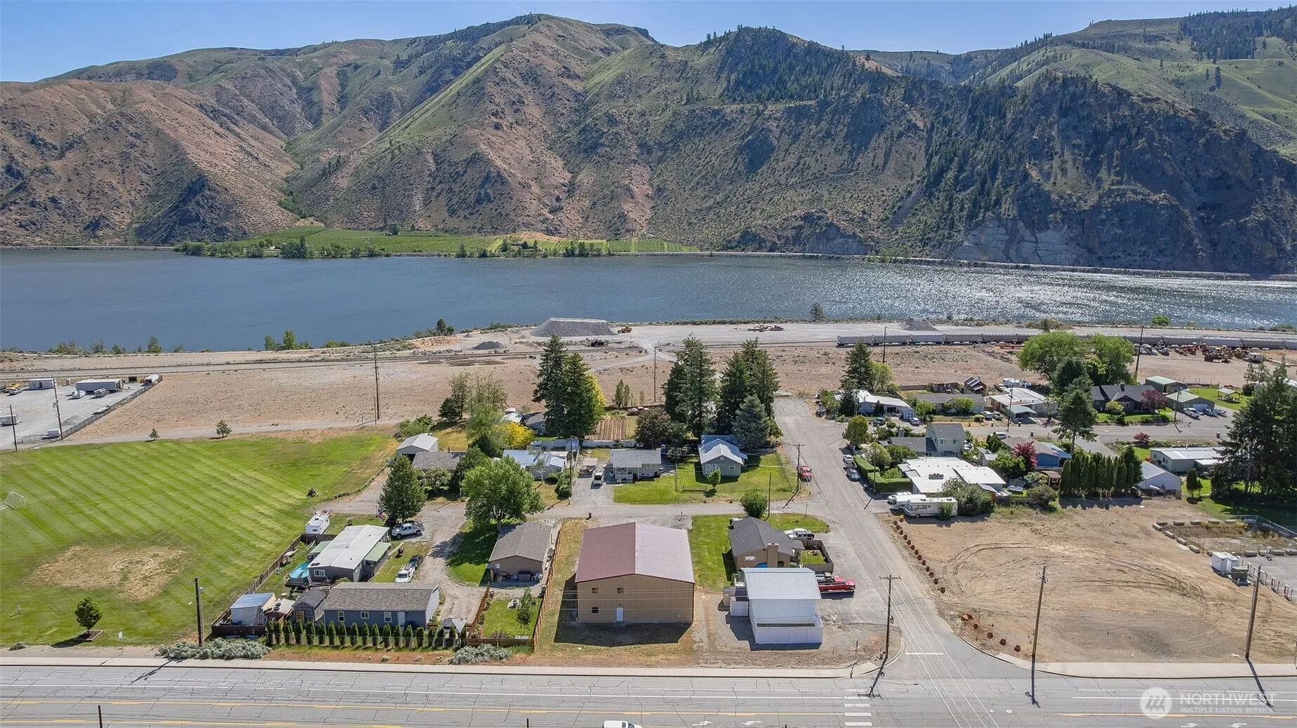 HUGE 3,500 sq ft commercial shop building in the heart of Entiat with prime frontage on Highway 97A. This high visibility location offers exposure to thousands of passing vehicles daily. 16 miles north to Lake Chelan and 16 miles south to Wenatchee. 2′ x 6′ construction, all insulated, heated floors, 440 double phase power, 3/4 bathroom, large office spaces, and an open upstairs loft for additional storage or possible apartment. Shop is wired for internet, has gutters and downspouts all around, metal roof, metal siding, 18′ tall doors and property has irrigation water as well. SO MUCH POTENTIAL HERE!