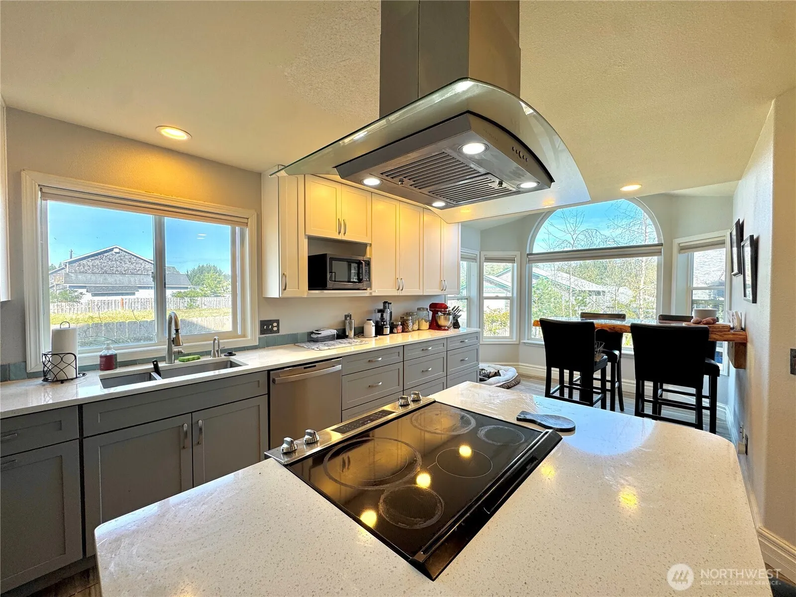 Beautiful, bright 3 bedroom ranch with great sunset views. Major renovations in last 2 years include a new kitchen (all new appliances), live edge table in breakfast nook, new primary bathroom with walk in shower, porcelain plank driftwood tile, insulated blinds (air cel), a dog spa/boot washing station, and a Kuma Aspen LE low emission woodstove that heats the entire house. Full-size washer and dryer are less than one year old. The kitchen includes high end cabinets; the oven is a smart appliance with air fry and convection features. A low maintenance luxury Artesian Spa Captiva hot tub is included. The garage has an EV charger, two workbenches, and ample shelving. The small, easy to maintain yard includes apple and pear trees.