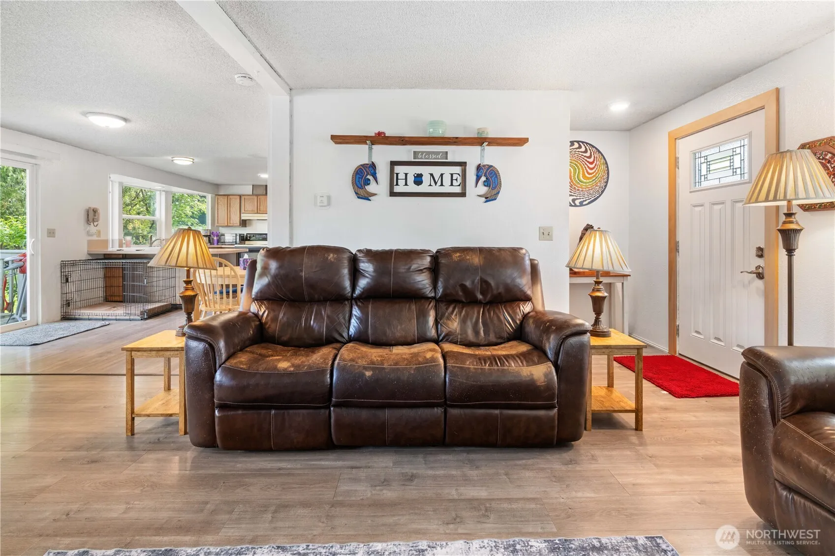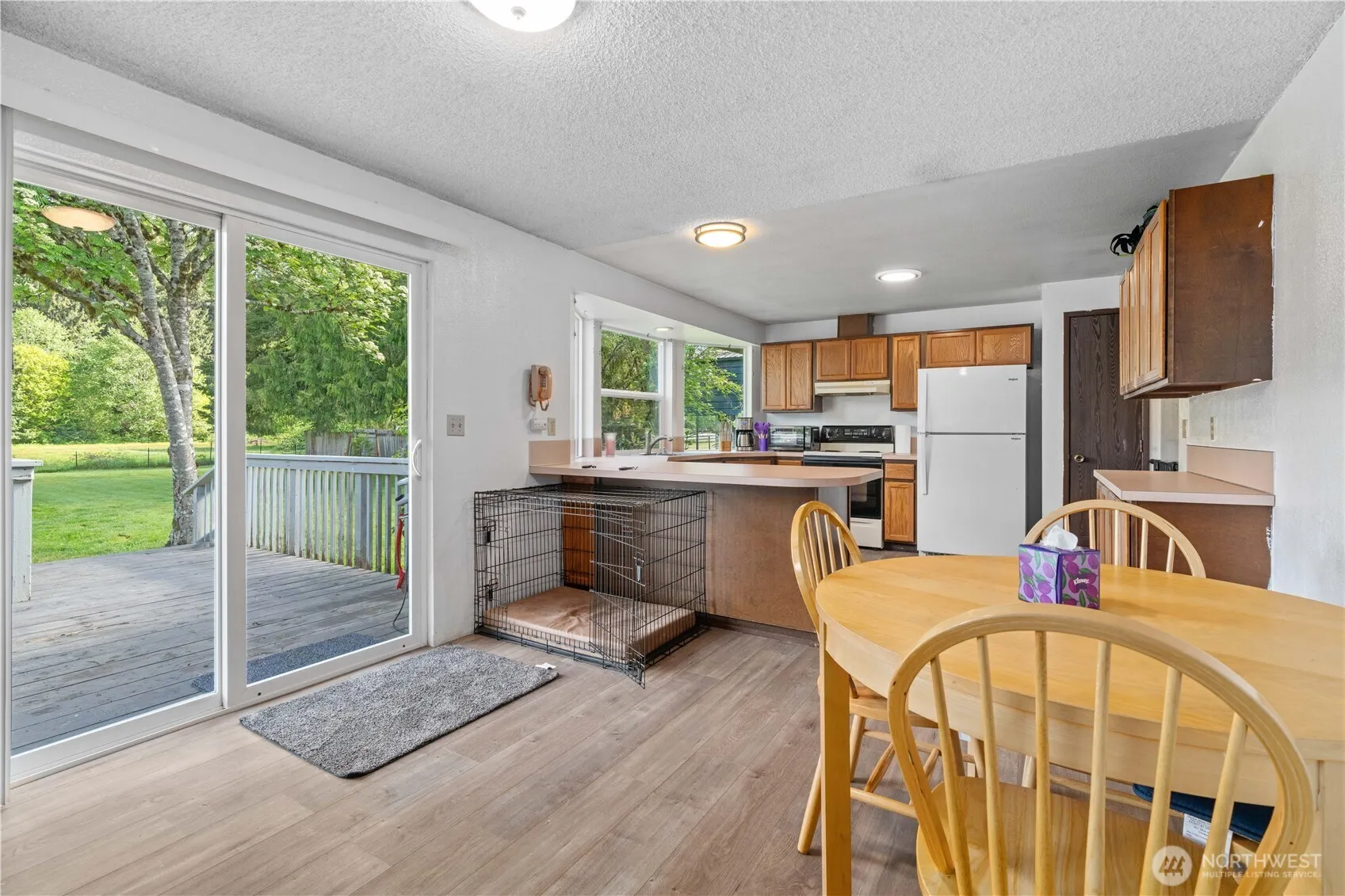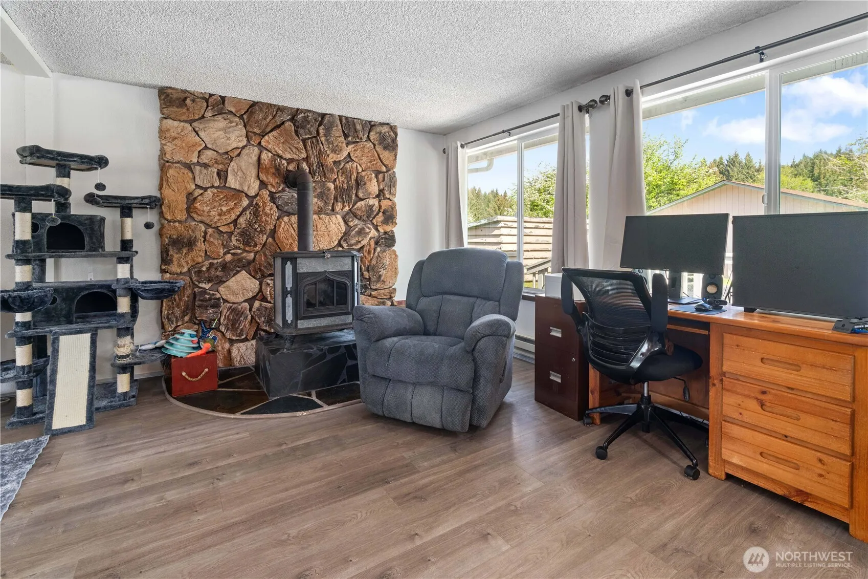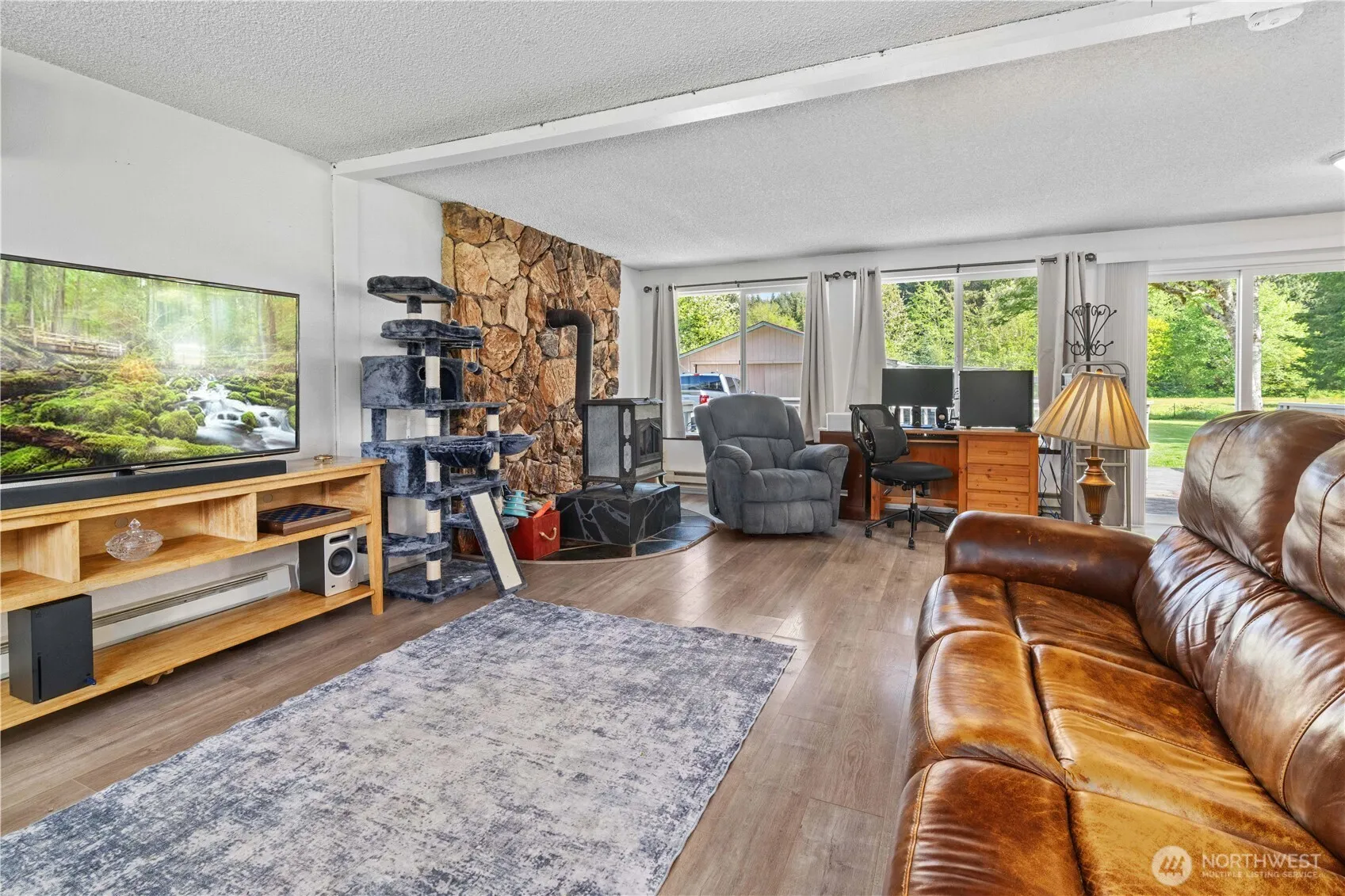 Wonderful 0.40 acre parcel with 1,440 square foot prefab home. This 2 bedroom, plus office, home has had many important upgrades done and is ready for it’s new owner. Large living room, dining room and kitchen have new laminate flooring and are kept comfortable with a ductless heat pump and small wood stove with easy access to the private back deck through a vinyl sliding glass door. The kitchen offers a great view of the scenic back yard and a ton of counterspace! Primary bedroom is huge with a private walk in closet and 3/4 bathroom. 2nd bedroom and office are nice size and offer easy access to the full bathroom off of the hall. The property has a 576 sf detached shop with additional storage area & carport. Enjoy the view!