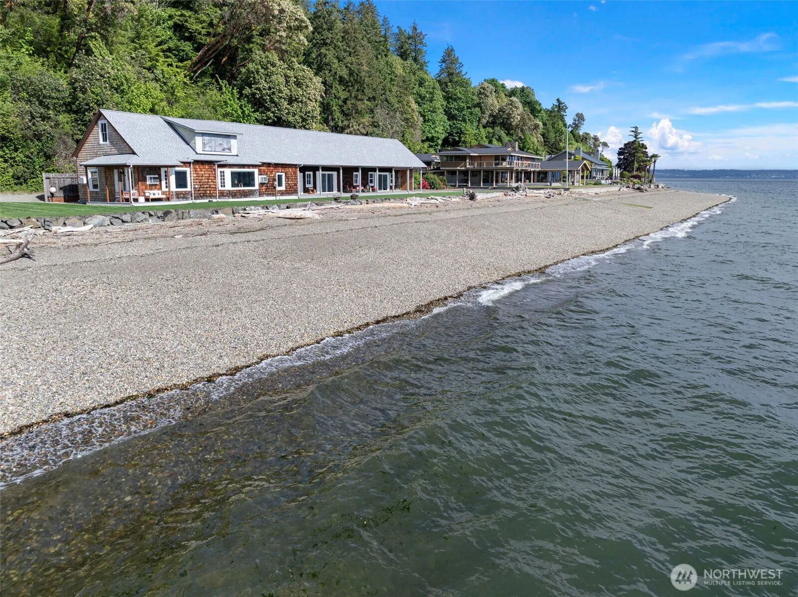 Private Beach Getaway on the Coveted West Shore of Fox Island. This is truly a one-of-a-kind property & is ready now for summer fun! Great for multi-gen enjoyment. Features 239’ of no-bank waterfront, 70 ft long covered porch, a 180° view of the Sound from Steilacoom to the Olympics, generous main living area, private bedroom suites, & an artist studio…all with magnificent views! The property has a unique and colorful history too. Built as a boarding house at the turn of the last century, the “Long House” is a magical place to escape with your favorite people. Enjoy happy hour on the porch, waterski from your front yard, kayak at sunset, build a bonfire under the stars. Beach House Rules: Relax. Relax. Relax. Free cold plunging included