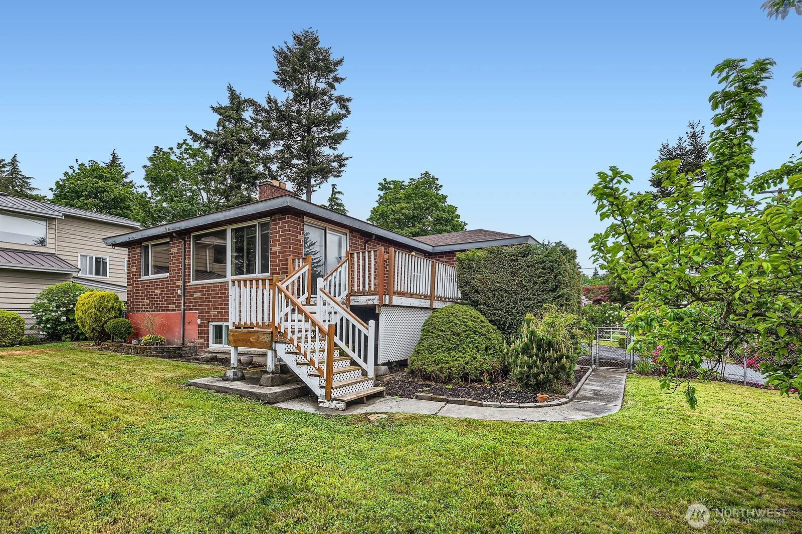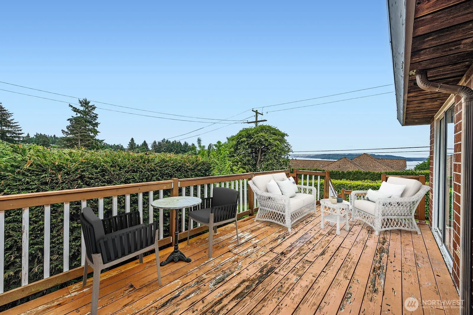 PRICED TO SELL!! Centrally located, just up the hill from Des Moines downtown and Marina! This sweet 3 bedroom, 2 bath mid century brick home includes views of the Sound and Mountains! Hardwood floors on the main level. Primary Suite has a 3/4 bath. Partially finished lower-level family room is ready for your favorite flooring choice. Port package triple pane windows throughout. New roof in 2025. Oodles of parking for vehicles including RV’s! Fruit trees (plum and apple) and mature plantings on this large, corner lot. This well-loved home is ready for some updates to make it your own!
