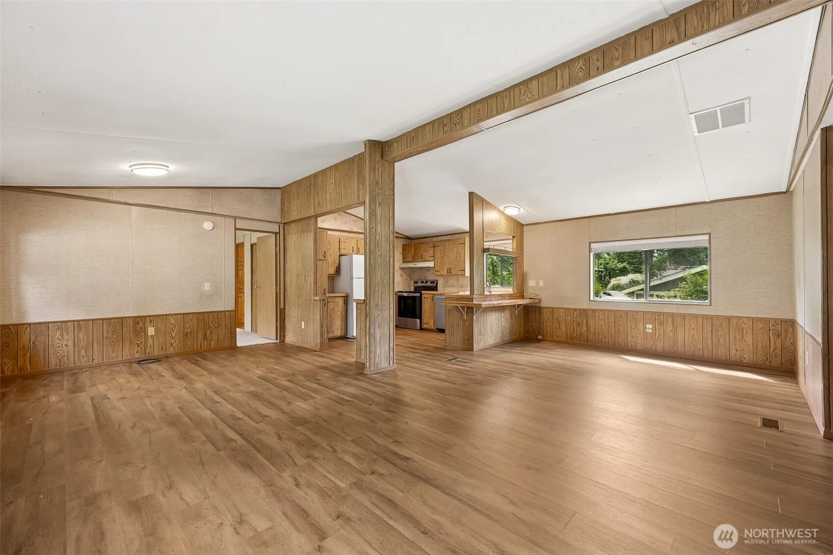 Welcome to this beautifully maintained 2-bedroom home W/versatile den/office space, nestled on a generous 0.6-acre lot in Graham. Freshly painted W/new carpet, LVP flooring, & newer appliances, this home is move-in ready & full of charm. The open living area features vaulted ceilings & barstool seating at the kitchen counter, perfect for entertaining. The kitchen offers ample cabinetry, prep space, & sink that overlooks the spacious backyard. The primary bedroom includes a full ensuite bath complete W/a newer shower. Additional highlights include a dedicated laundry room W/storage & washer/dryer that stay! Room for RV Parking & a covered carport. Just minutes to downtown Graham, schools, & entertainment!