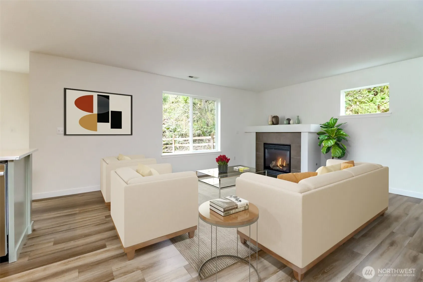 Welcome to this spacious 3-bedroom home in the desirable Arbors community! This move-in ready gem has been thoughtfully updated with new carpet, luxury vinyl plank flooring on the main level, fresh interior paint, a beautifully remodeled kitchen, brand-new AC and furnace, and a low-maintenance turf backyard. The open-concept kitchen flows seamlessly into a living area featuring a cozy gas fireplace, ideal for entertaining or relaxing. Upstairs, you’ll find a versatile bonus space, plus a large primary suite with 5-piece bath and walk-in closet. Enjoy added privacy with the home backing to a protected native growth area. Conveniently located close to shopping, dining, and HWY 169 for an easy commute – this one checks all the boxes!