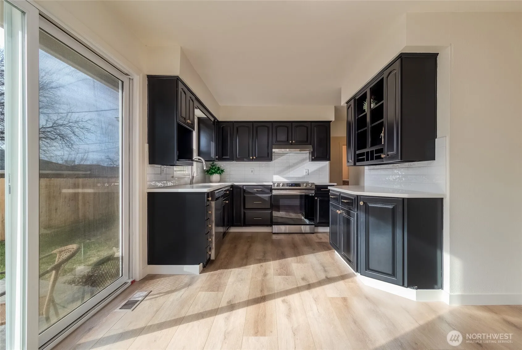 Move right into this tastefully updated home and enjoy the natural light flowing through the living room on sunny days or get cozy in front of the wood burning fireplace on chilly winter nights. The spacious kitchen offers quartz counters, tile backsplash, stainless steel appliances and plenty of storage. The main floor bathroom boasts a beautiful soaking tub with tile surround, tile shower, double vanity, and herringbone tile floor. The lower level bathroom offers a matching single vanity and tile floors with subway tile shower. An oversized Rec Room provides many possibilities. Workout room, media room, pool table? Enjoy all the privacy this corner lot offers with summer gatherings and a fully fenced yard for your fur babies!