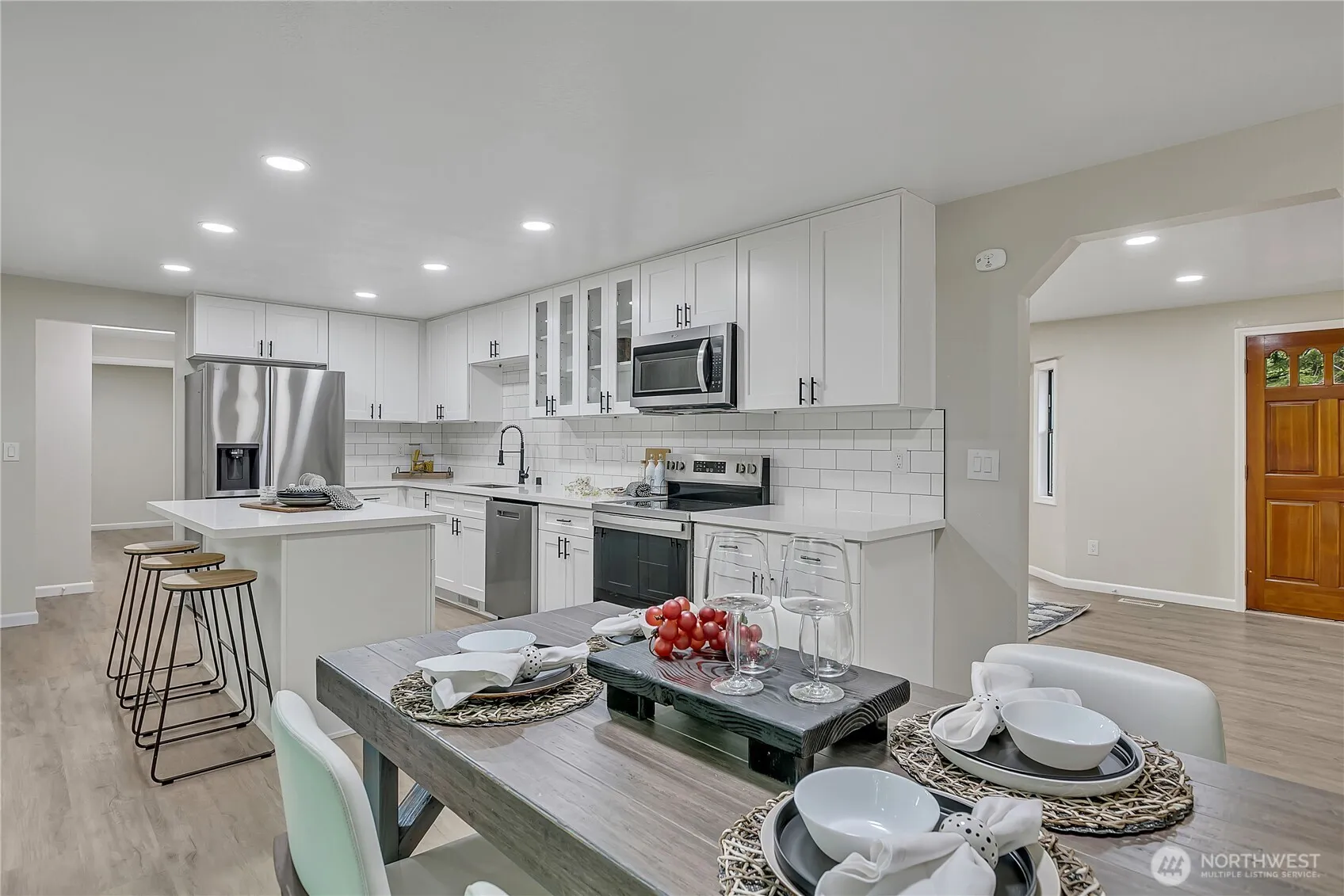Welcome to this beautiful upgraded home on over an acre of refreshed landscaping. Enjoy privacy and convenience in all that Maple Valley has to offer. Modern comforts such as updated kitchen with new stainless appliances, quartz counters and kitchen island for entertainment. Fresh exterior and interior paint, lvp flooring throughout entire home, updated bathrooms with quartz showers. Of course don’t forget the additional half bath and fourth bedroom! Located in the heart of Maple Valley in the sought-after Tahoma School District, with trails, shops, and charm just steps away! This may be the piece of paradise you have been looking for!