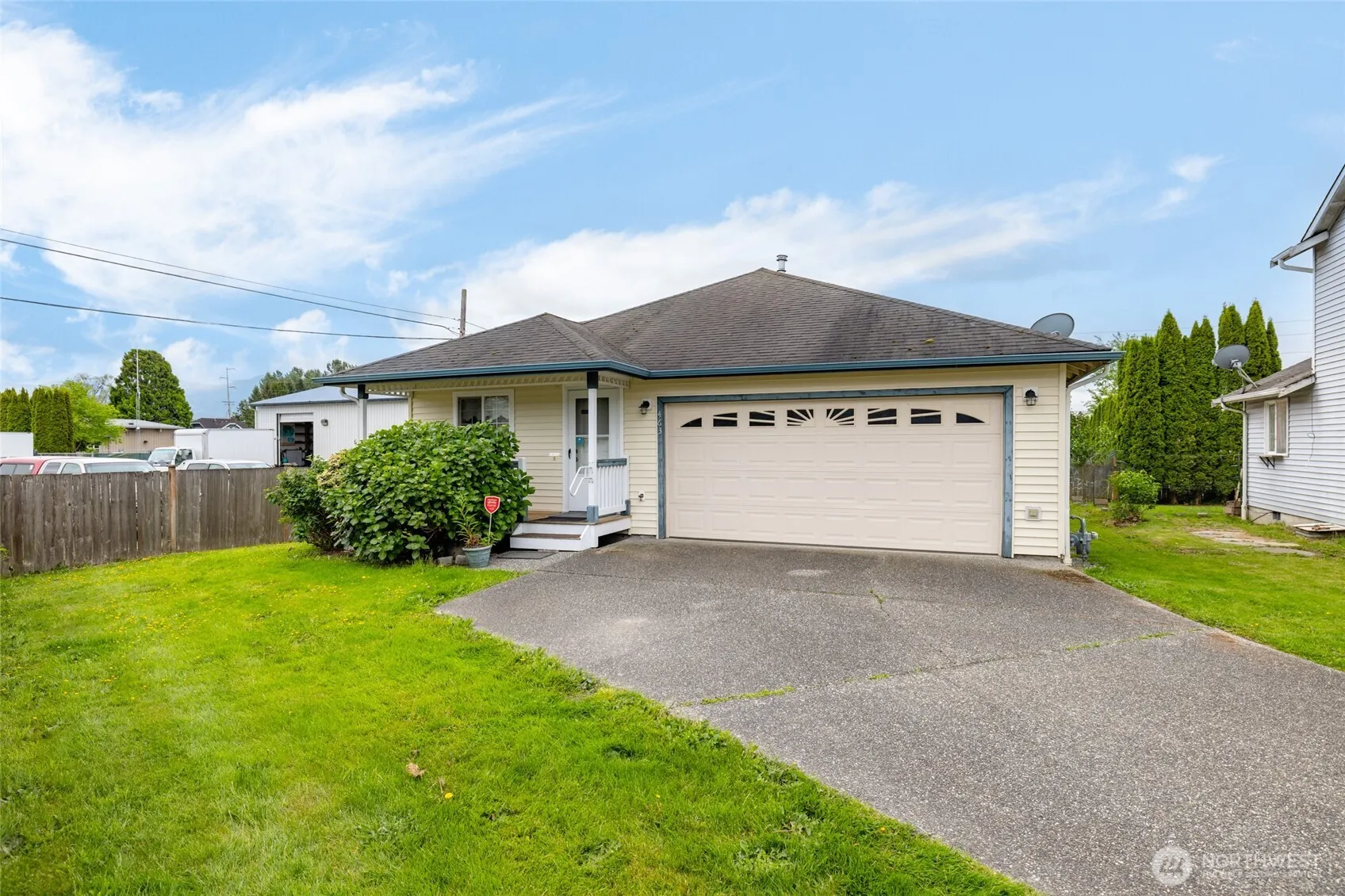 Cozy, one level home offering 3 bedrooms, 2 full baths, over 1200 sq. ft. all appliances included, vaulted ceilings & open floor plan. Lg. primary bedroom with walk-in closet & full bath. Home is tucked back off Rohrer Loop with the driveway leading to the 2 car garage. Partially fenced lot with plenty of room for a garden or area to create a space for outdoor living off the patio. Property boarders city property to the East.