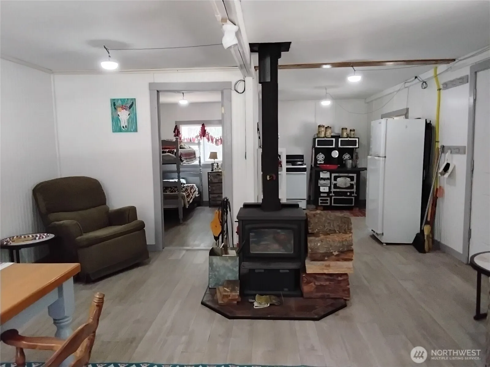 Nearly 10 acres, fully fenced with locked gates, and a year-round creek running through both parcels—peacefully secluded and bordering thousands of acres of National Forest. The two-bedroom pole barn-style cabin features fire-safe metal siding; includes a kitchen with an antique wood stove, propane oven, refrigerator, and an approved outhouse. An attached shop offers a dirt floor and a large sliding door. The second lot includes a 2,500-gallon holding tank on a hill for potable water, an approved septic for a 3-bedroom home, a propane tank, and a building site ready to go! Perfect for nature lovers, homesteaders, or a quiet getaway.