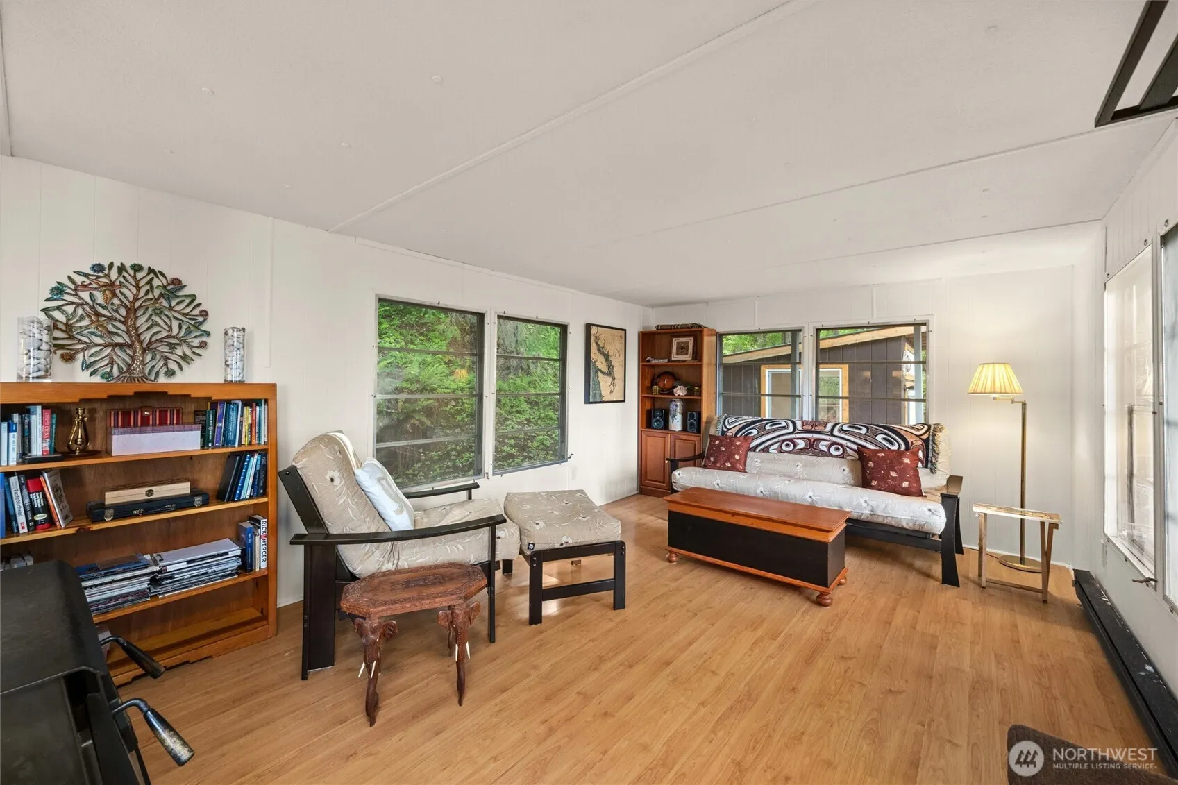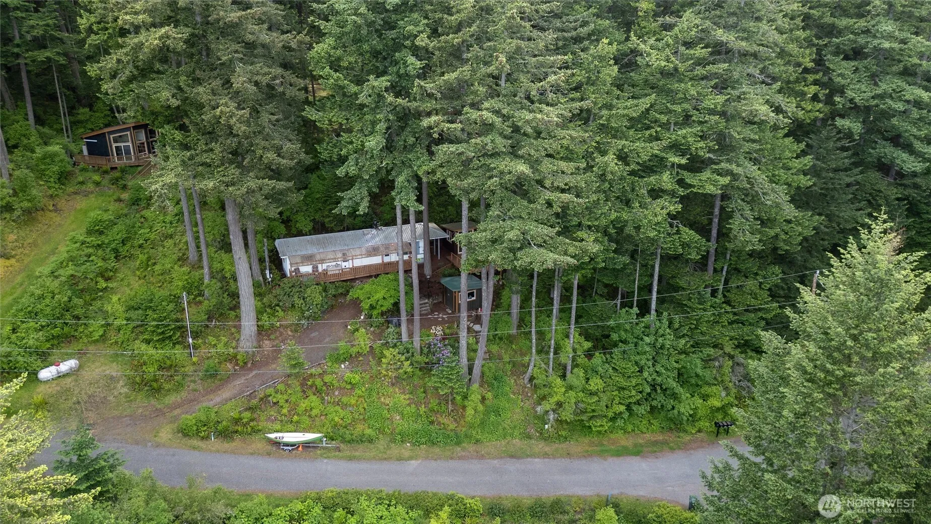 Incredible opportunity to live in this affordable+ charming 1-bedroom retreat forever OR while you build your dream home! This home features an updated kitchen and bathroom, a full-size stackable washer/dryer, a new on-demand hot water tank, and a cozy wood stove—perfect as a full-time home or weekend getaway. Set on two forested lots with stunning views of Hales Passage, Mount Baker, and the Sisters, this property also includes a sound and proud studio (use as a guest suite, office, or art studio..) with an expansive deck & solid outbuilding. Enjoy all the community perks—walk to the swimming lake & playground, launch your boat, or relax at the clubhouse and beach. A unique blend of comfort, potential, and Pacific Northwest beauty awaits!