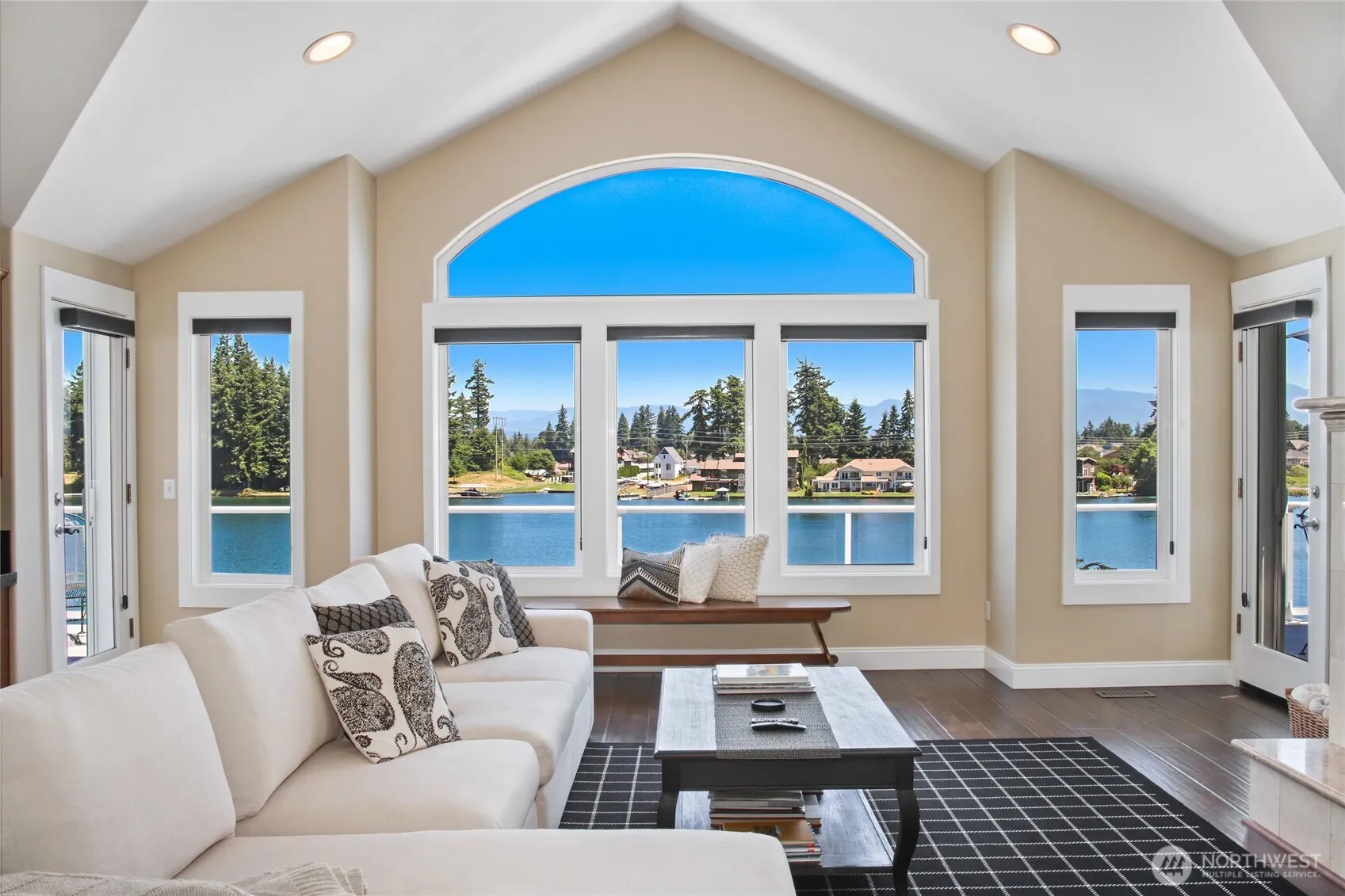 Enjoy resort-style living in this stunning Tapps Island home with 75′ of year-round waterfront. Experience breathtaking Lake Tapps & Cascade Mountain views from nearly every room + Mt. Rainier view from both decks & backyard. Featuring a brand-new roof & heat pump w/A/C, 2 primary suites, chef’s kitchen, media room, hot tub & a terraced backyard leading to your private dock & boat lift. Luxuriate in the main-level primary suite w/5-piece bath & an incredible walk-in closet. Open floor plan, expansive view decks & parking for 6–8 vehicles make this home perfect for entertaining. Tapps Island offers 24/7 guarded entry & exclusive amenities: boat launch, pool, golf, tennis, restaurant & more. Don’t miss out on your dream of waterfront living!
