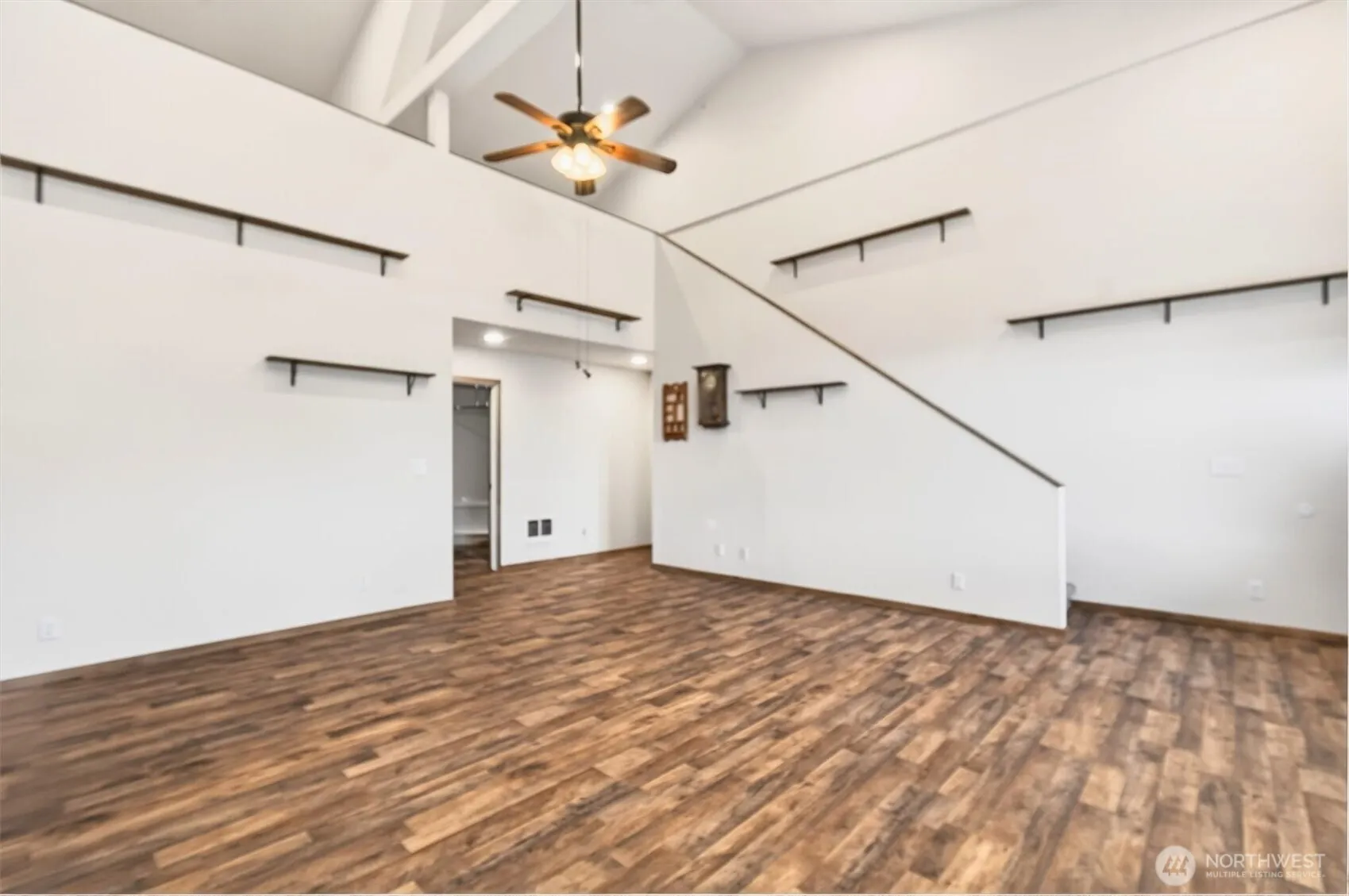 Car, hunting and fishing; outdoor enthusiasts, this tastefully done shop house, is the last house on a dead end road, fenced and ideal for entertaining. Shop has power RV size garage doors, Blaze King wood stove, shudders over each window, custom spiral stairs lead up to a loft/storage area and bathroom. Inside the living space you will find an open concept design, stainless steel appliances, large loft bedroom, recessed lighting, over-sized ceiling fan, a bathroom/laundry combo. Off the back side there is an additional unfinished area, with an in progress walk in freezer/canning area. A carport extends the length of the structure, full RV hookups or for up to 3 vehicles. a horseshoe pit, fruit trees, lawn tools shed. Estate: sold As Is