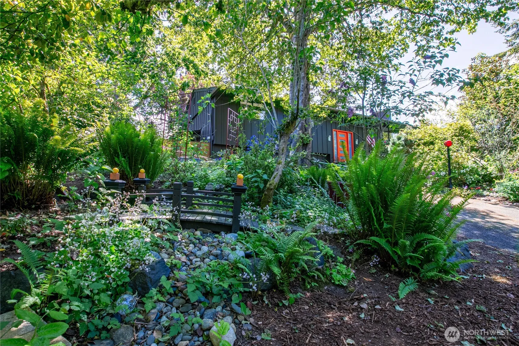 Refined living meets natural elegance in this masterfully maintained University Place treasure. Just a block from Curtis High in the sought-after UP School District, this split-entry stunner boasts a new furnace, new electrical panel, new central AC, EV charging, generator hook-ups, and two wood-burning fireplaces. Enjoy tasteful updates upstairs, a beautifully remodeled open-concept kitchen, an en-suite with walk-in shower, an attached garage, and a fully fenced private backyard oasis. The low-maintenance, curated garden—certified as a backyard wildlife sanctuary and featured on the UP Garden Tour—is a true showstopper. If you’re a gardener and not impressed, check your pulse. Sophisticated, serene, and truly one of a kind.