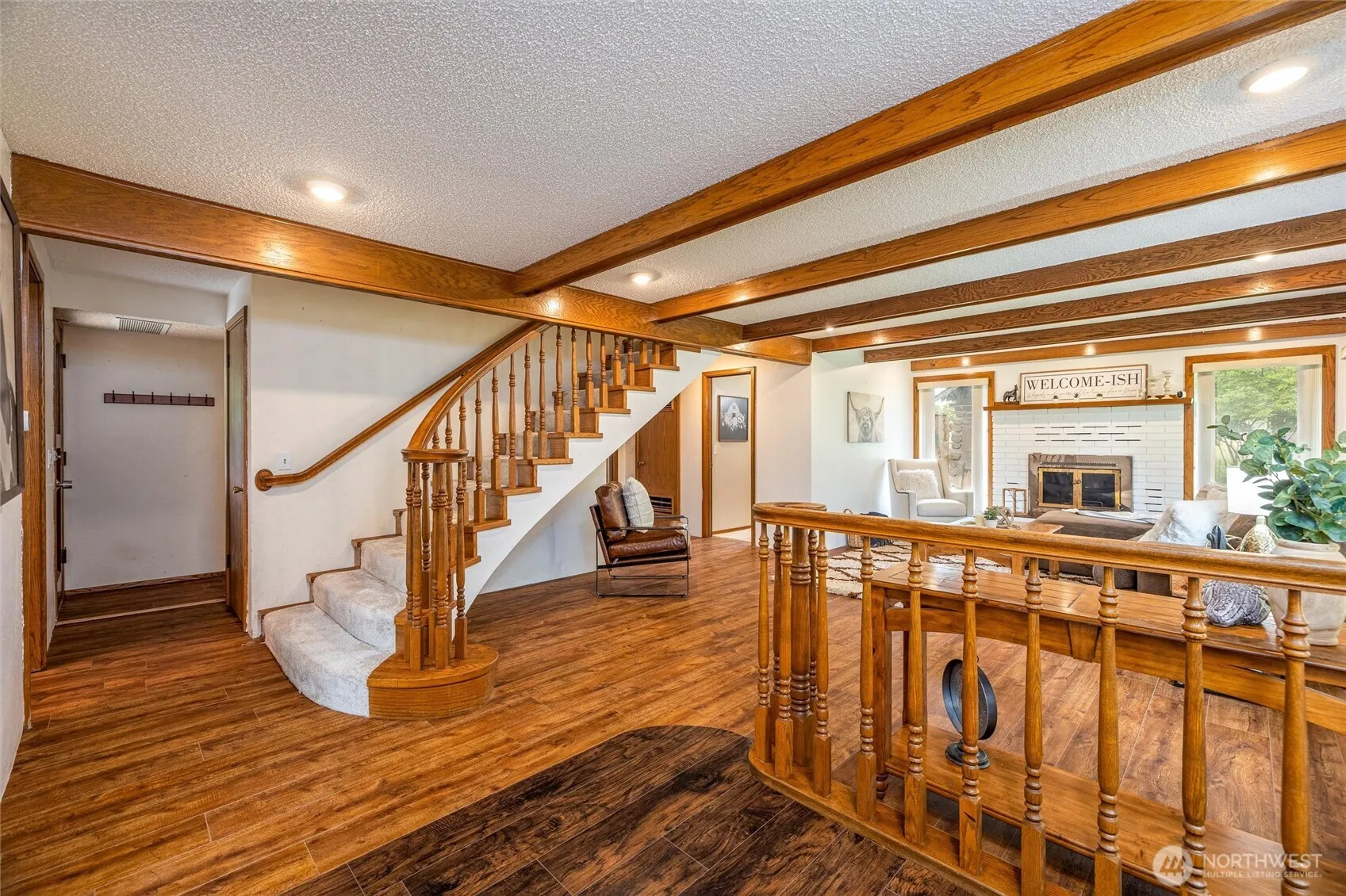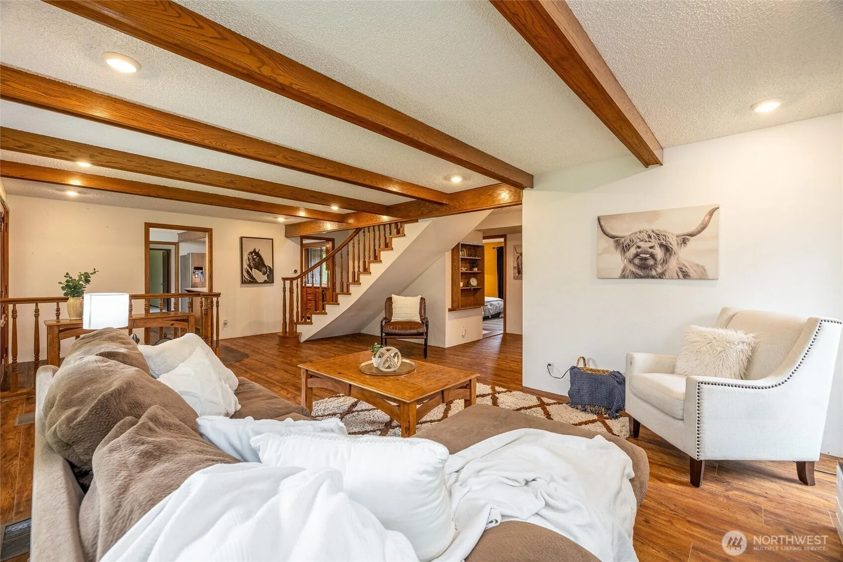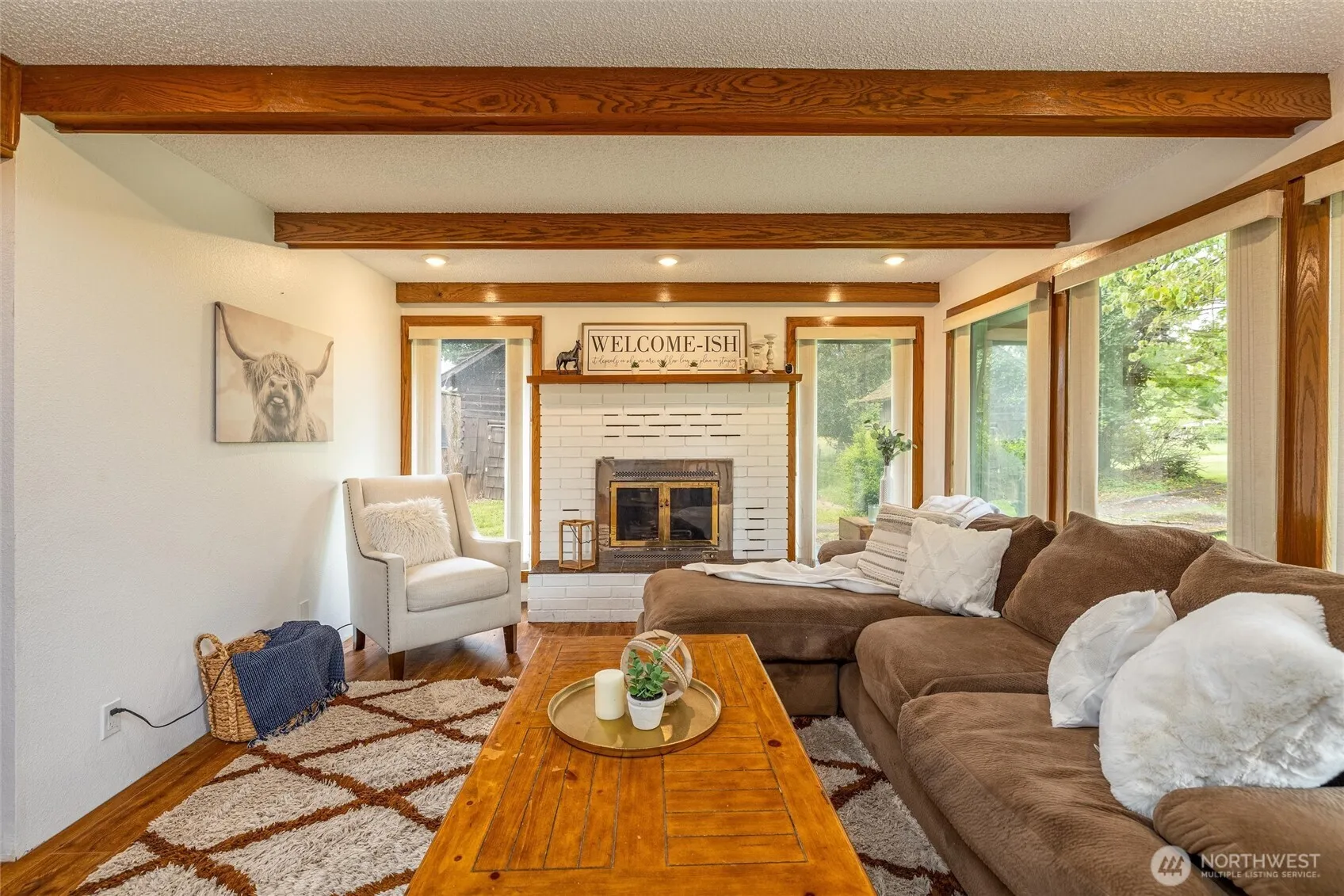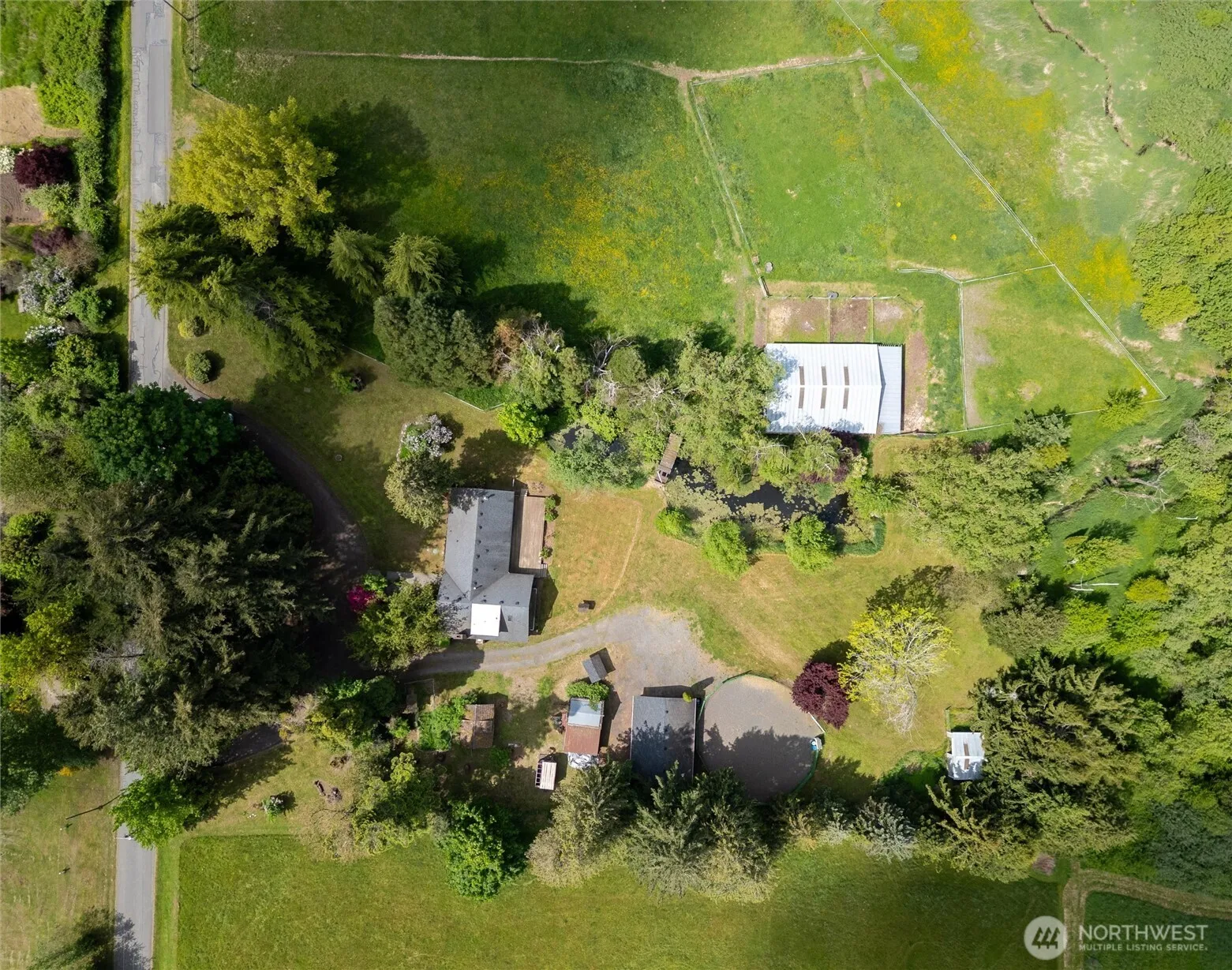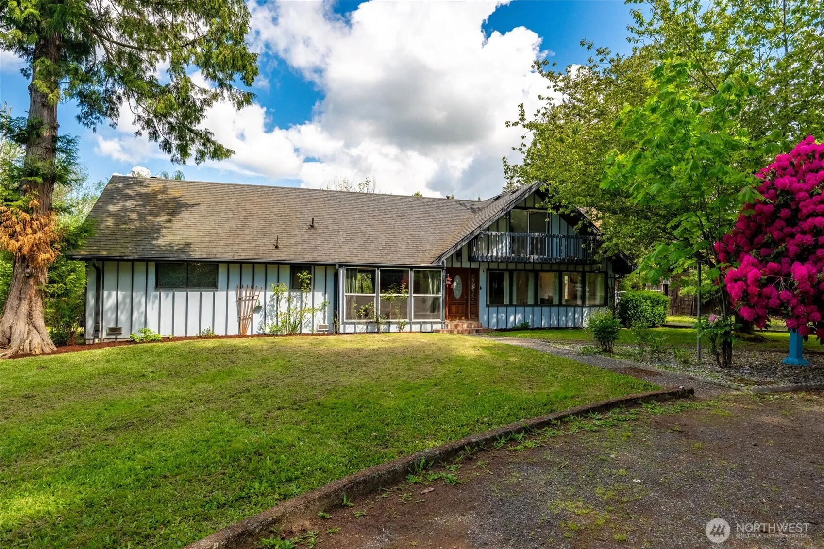 Boutique hobby farm on flat 3.65 acres in Ferndale. This 3,124 sq. ft. home lives like a 5 bedroom and includes fresh flooring and new carpets. Entering, you’re greeted by a spacious living room with cozy beams and gas fireplace. Adjacent dining area with floor to ceiling windows and large kitchen. Main floor primary bedroom with 3/4 bath is the the perfect set up for a separate living space with a living area, kitchenette & separate entry. Gorgeous, storybook setting complete with picturesque pond and bridge. Set up for livestock with large 60X36 barn, additional 2 stall stable with paddocks and fenced pasture. 3 bay detached garage with stove, sheds, chicken coop and even an old homesteader’s cabin. Easy access to I5, dining and shops.