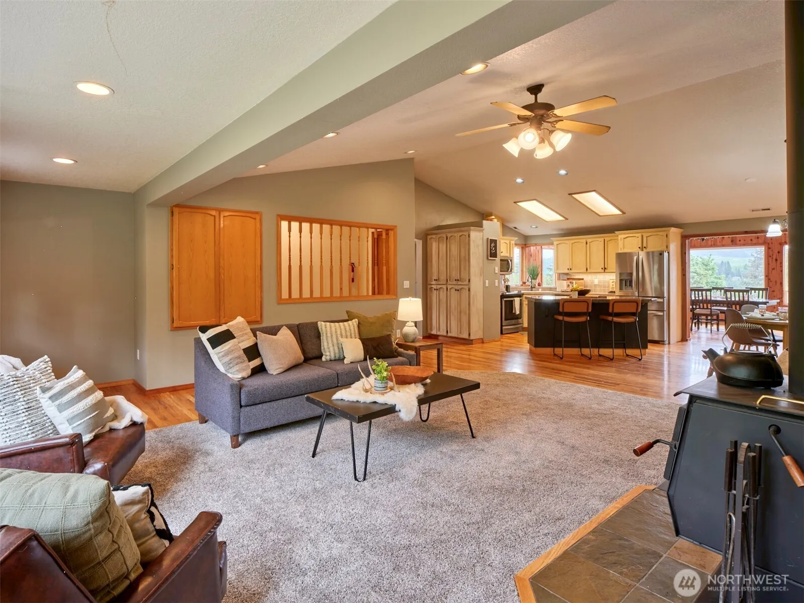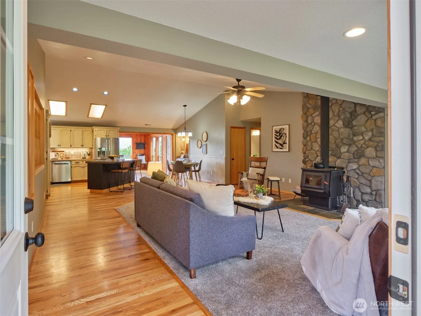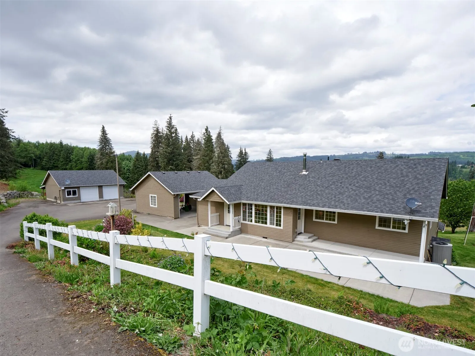 Wonderful 4-bedroom home with Mt St Helens views! Front door opens into the living room featuring a river rock wall with a cozy wood burning stove. Open concept provides easy access to the kitchen and nook area. Beautiful, vaulted wood ceiling with walls of windows showcases a stunning Mt Saint Helens view overlooking the peaceful backyard. Main floor Primary suite, with walk-in closet. 2nd bedroom, office, and mudroom all on the main level. Downstairs are two additional bedrooms, large family room, full bath, craft room, sauna. Double detached garage/carport, huge, paved parking area plus a big shop building. Lots of space for your home business equipment and toys. Fenced pasture for a couple critters. This has it ALL!